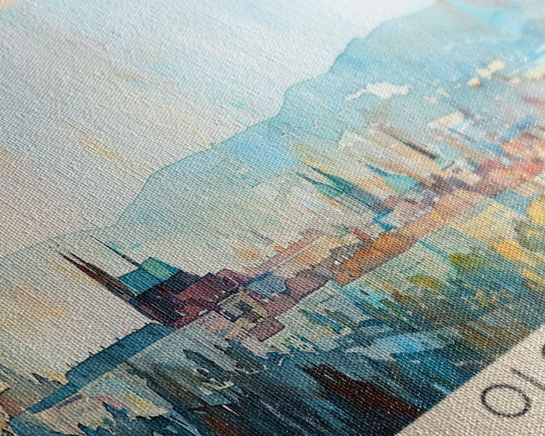 Most of our canvases are made in the USA, with the exception of canvases ordered with the light oak unstained frames, and any large canvases (24x48, 30x60, 16x48 and 20x60) ordered WITH a frame. These are temporarily made in and shipped from Europe, while we try to find a more consistent supplier in the USA.