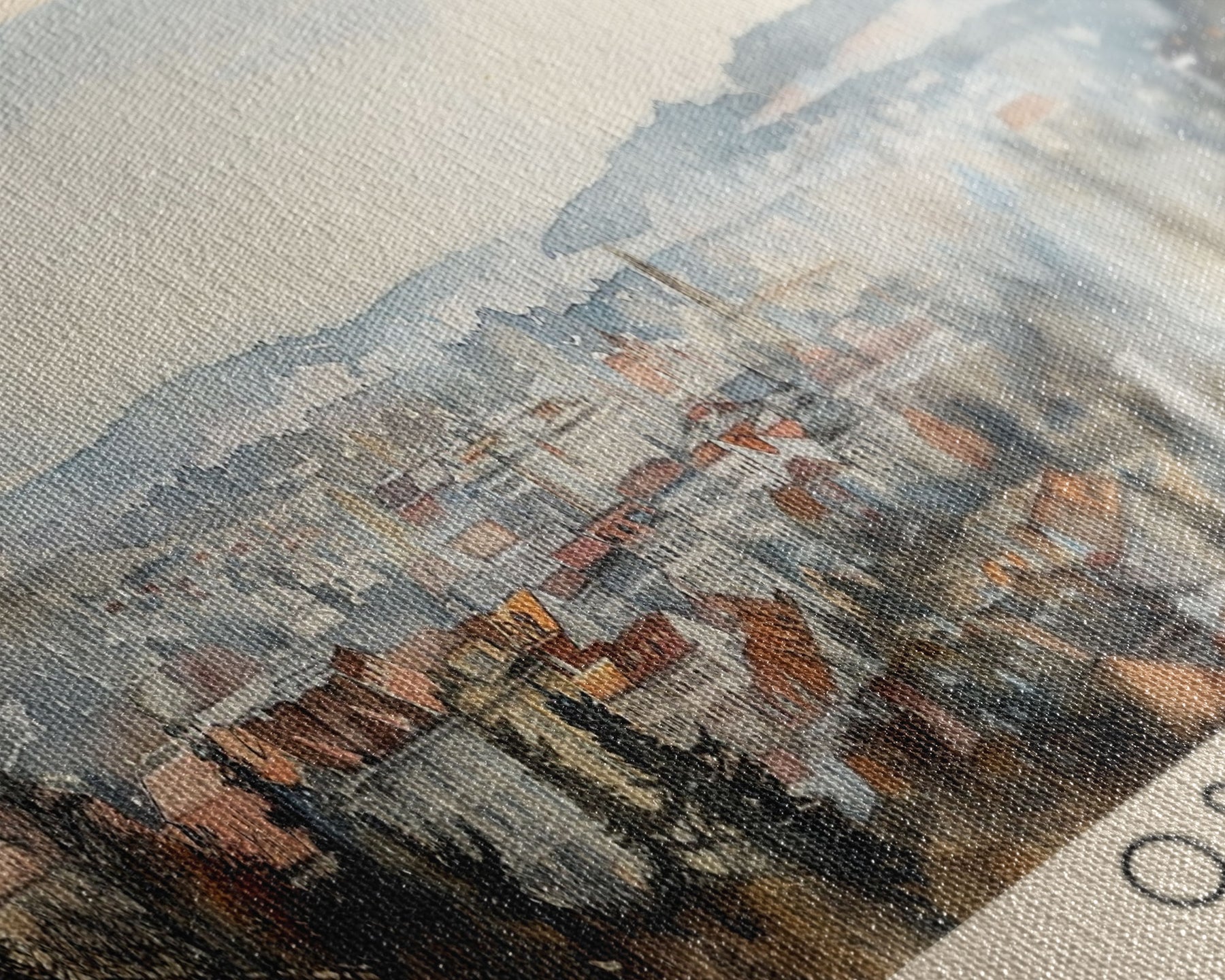 Most of our canvases are made in the USA, with the exception of canvases ordered with the light oak unstained frames, and any large canvases (24x48, 30x60, 16x48 and 20x60) ordered WITH a frame. These are temporarily made in and shipped from Europe, while we try to find a more consistent supplier in the USA.