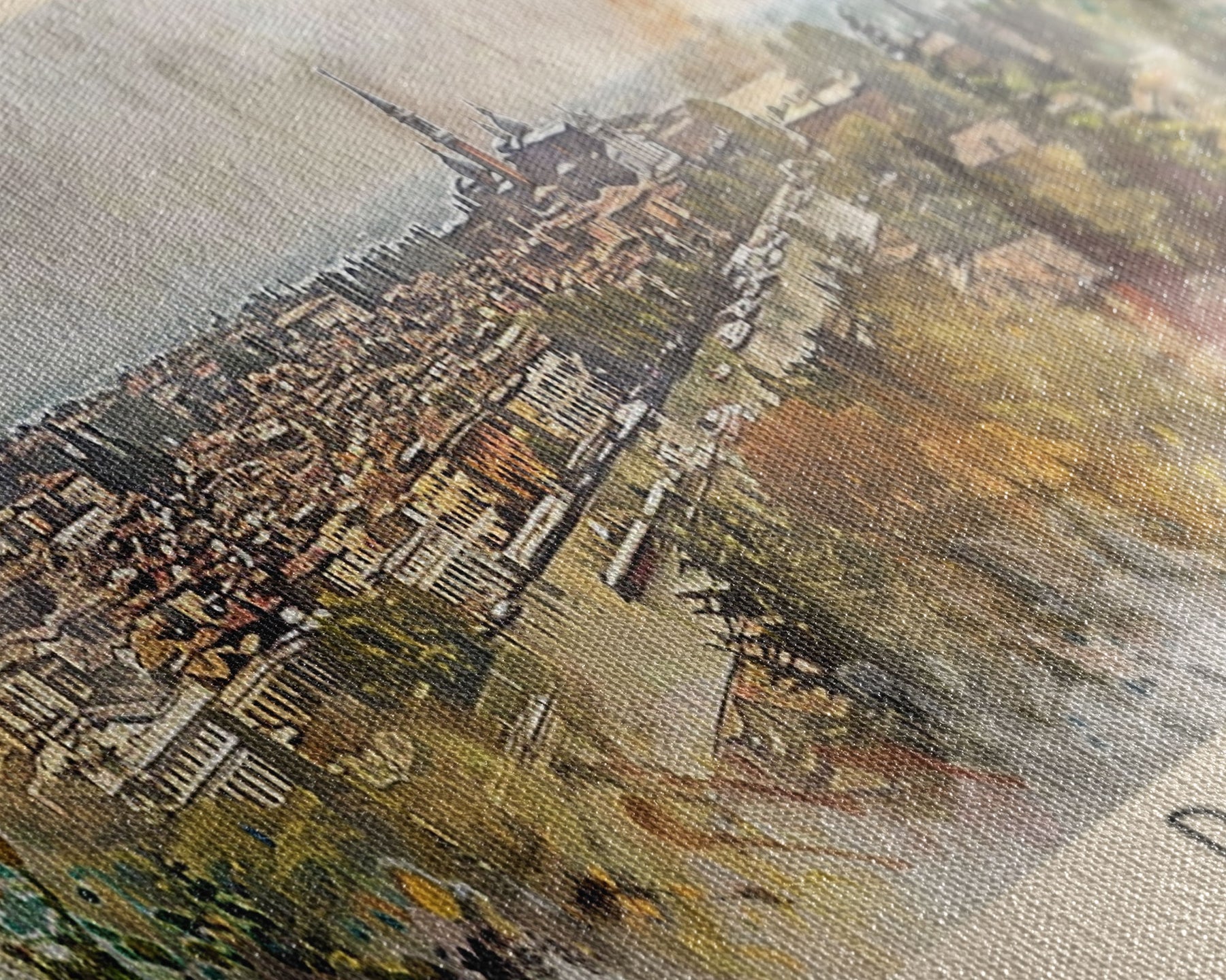 Most of our canvases are made in the USA, with the exception of canvases ordered with the light oak unstained frames, and any large canvases (24x48, 30x60, 16x48 and 20x60) ordered WITH a frame. These are temporarily made in and shipped from Europe, while we try to find a more consistent supplier in the USA.