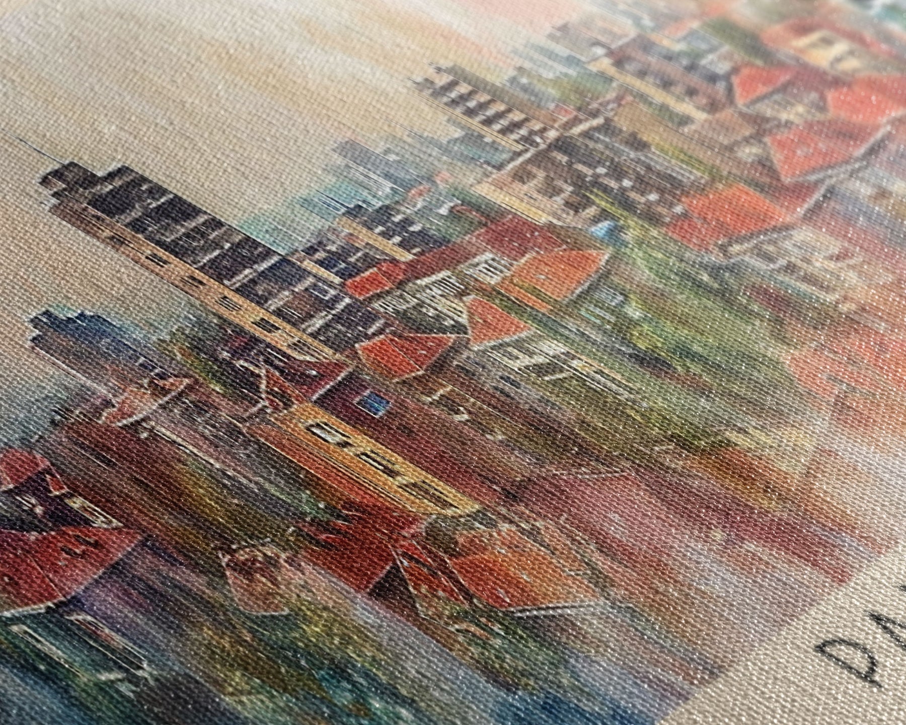 Most of our canvases are made in the USA, with the exception of canvases ordered with the light oak unstained frames, and any large canvases (24x48, 30x60, 16x48 and 20x60) ordered WITH a frame. These are temporarily made in and shipped from Europe, while we try to find a more consistent supplier in the USA.