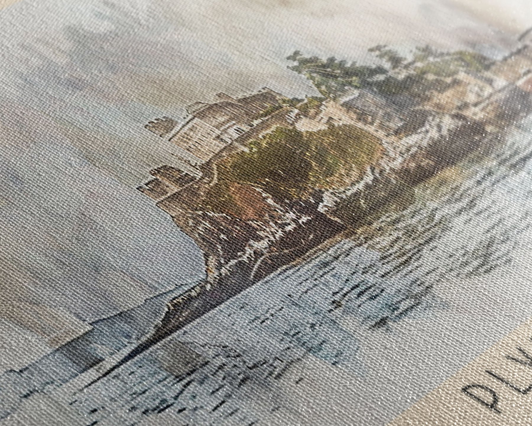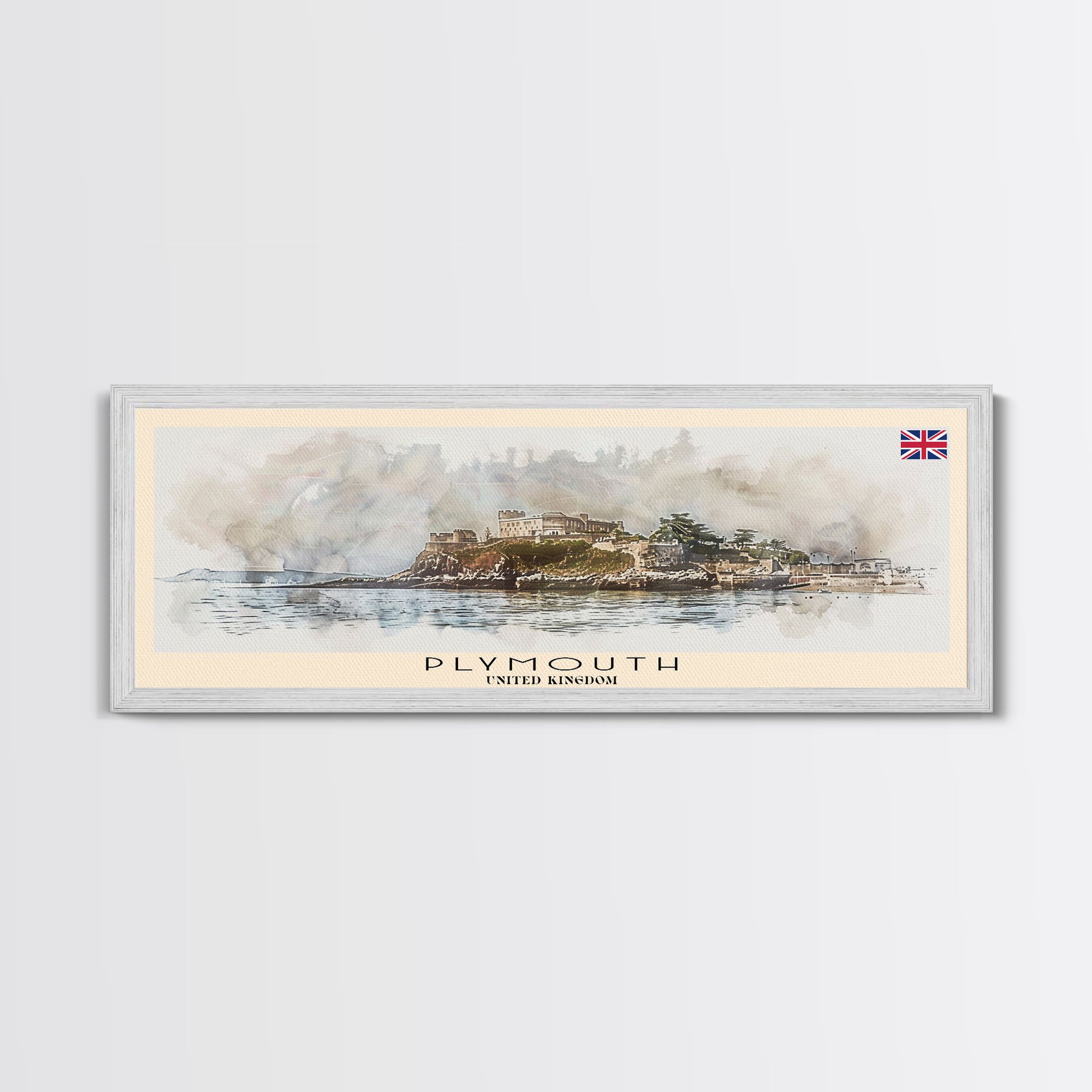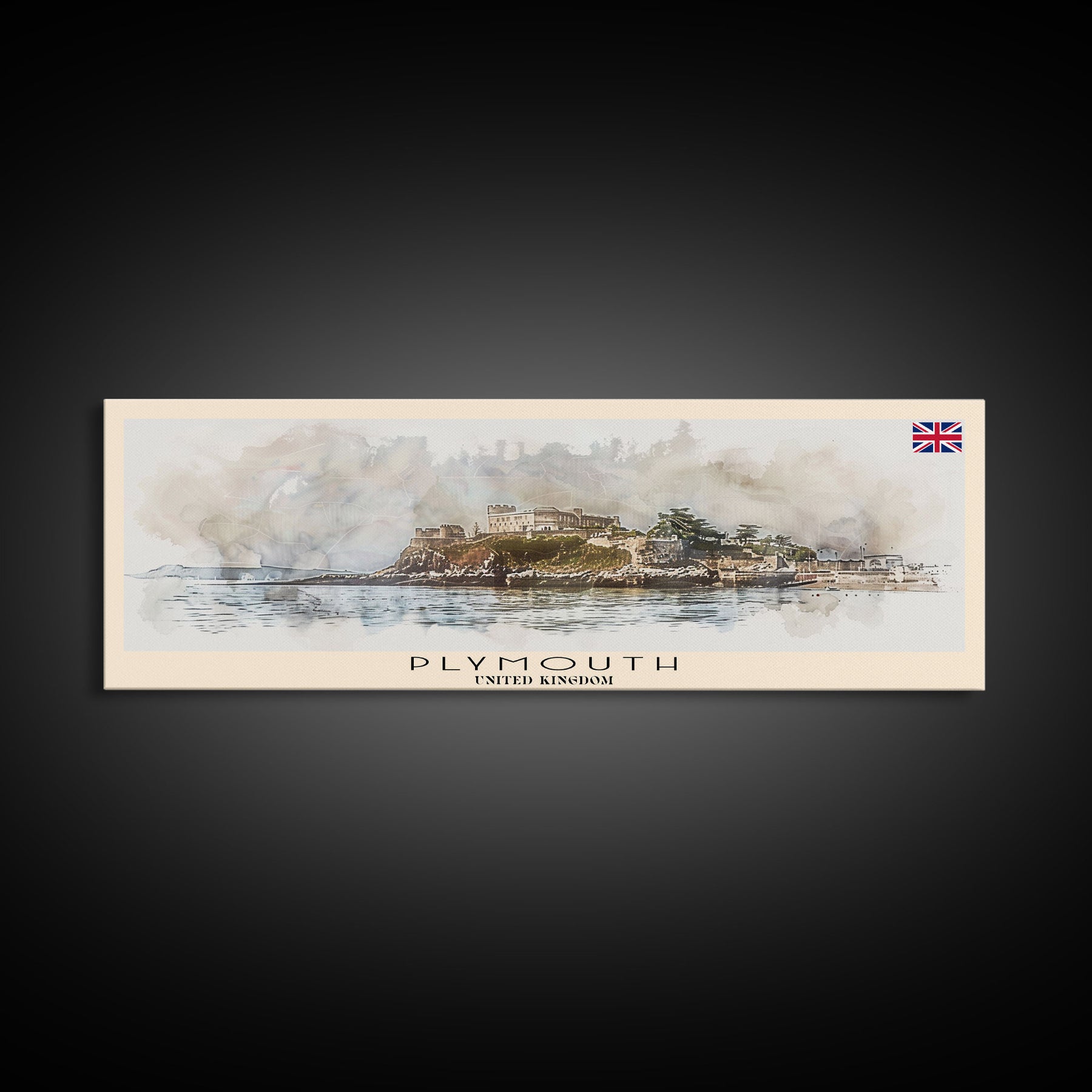 Plymouth United Kingdom Panoramic Travel Poster, Framed Canvas Print or Metal Wall Art, Travel Art, Home Decor, Panoramic Painting, Midcentury Art