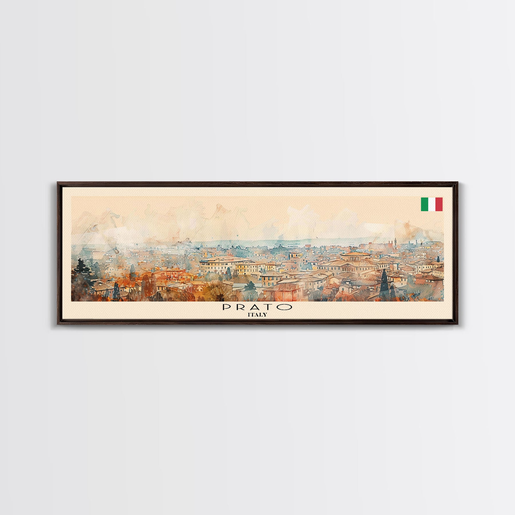 Prato Italy Panoramic Travel Poster, Framed Canvas Print or Metal Wall Art, Travel Art, Home Decor, Panoramic Painting, Midcentury Art