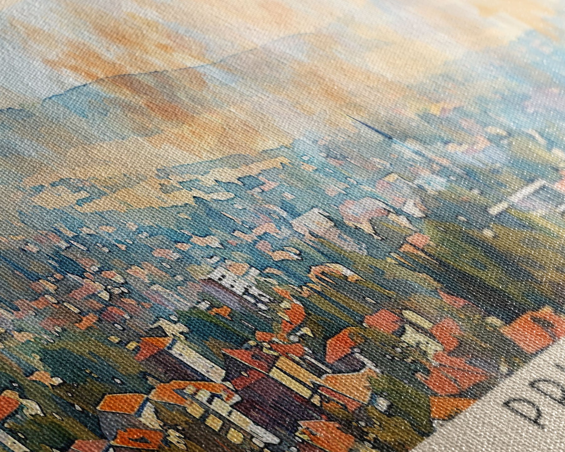 Most of our canvases are made in the USA, with the exception of canvases ordered with the light oak unstained frames, and any large canvases (24x48, 30x60, 16x48 and 20x60) ordered WITH a frame. These are temporarily made in and shipped from Europe, while we try to find a more consistent supplier in the USA.