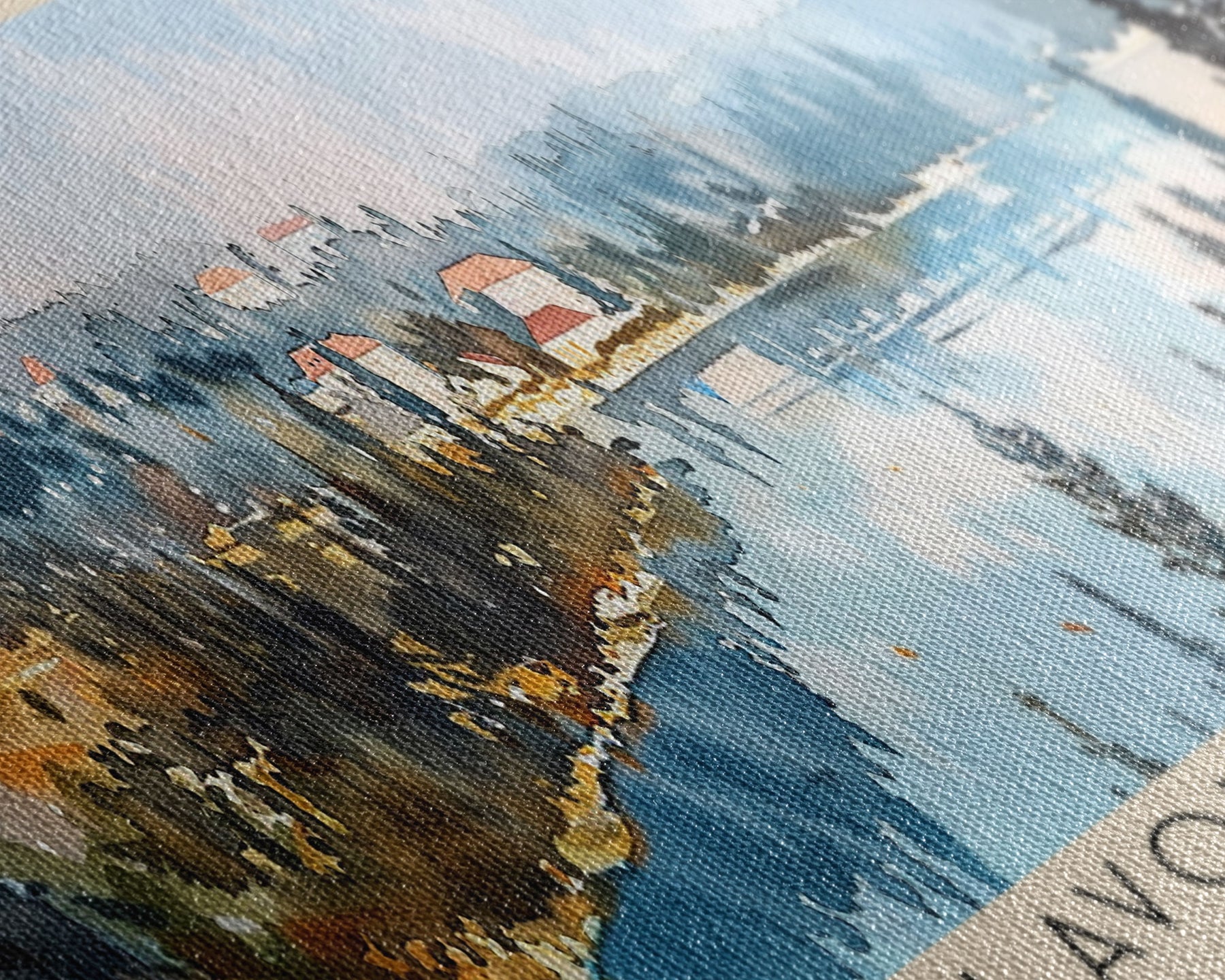 Most of our canvases are made in the USA, with the exception of canvases ordered with the light oak unstained frames, and any large canvases (24x48, 30x60, 16x48 and 20x60) ordered WITH a frame. These are temporarily made in and shipped from Europe, while we try to find a more consistent supplier in the USA.