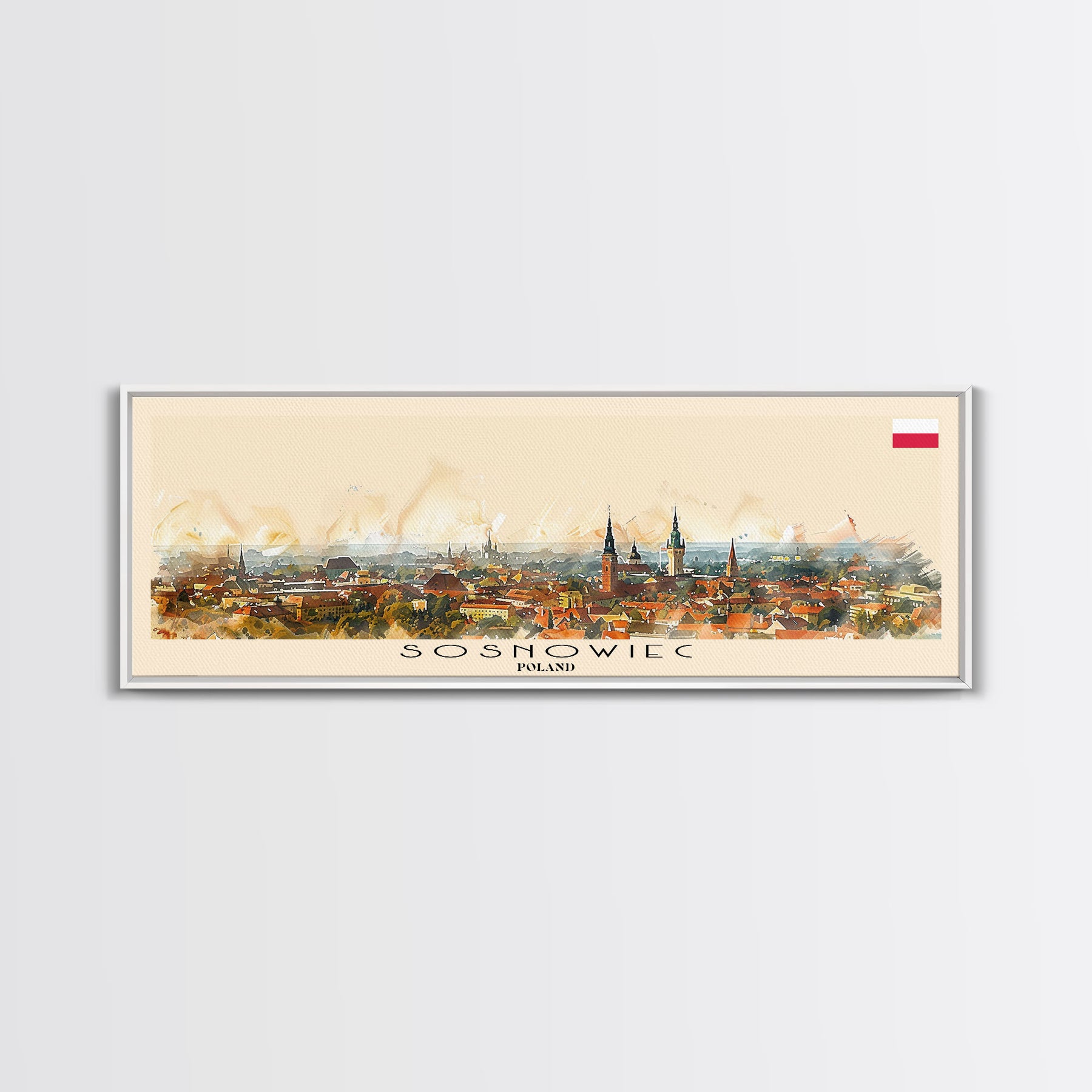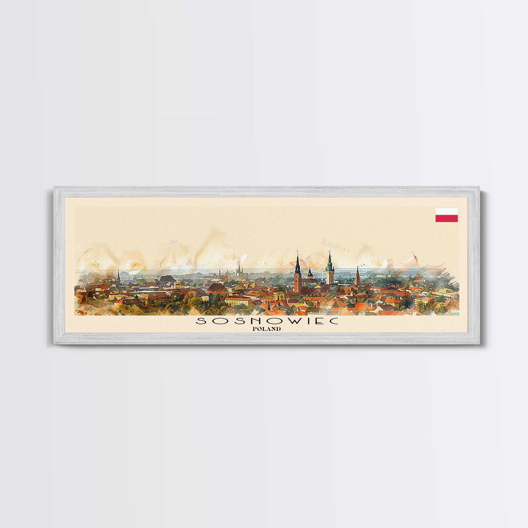 Sosnowiec Poland Panoramic Travel Poster, Framed Canvas Print or Metal Wall Art, Travel Art, Home Decor, Panoramic Painting, Midcentury Art