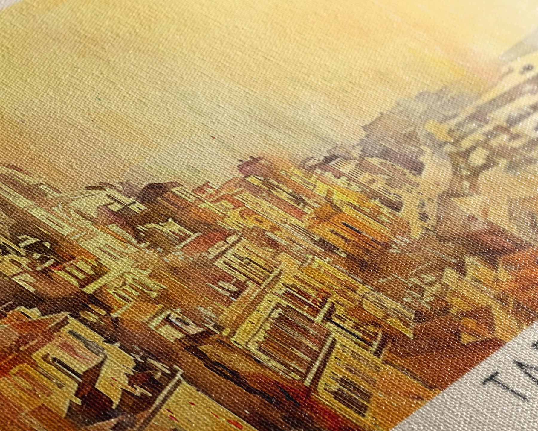 Most of our canvases are made in the USA, with the exception of canvases ordered with the light oak unstained frames, and any large canvases (24x48, 30x60, 16x48 and 20x60) ordered WITH a frame. These are temporarily made in and shipped from Europe, while we try to find a more consistent supplier in the USA.