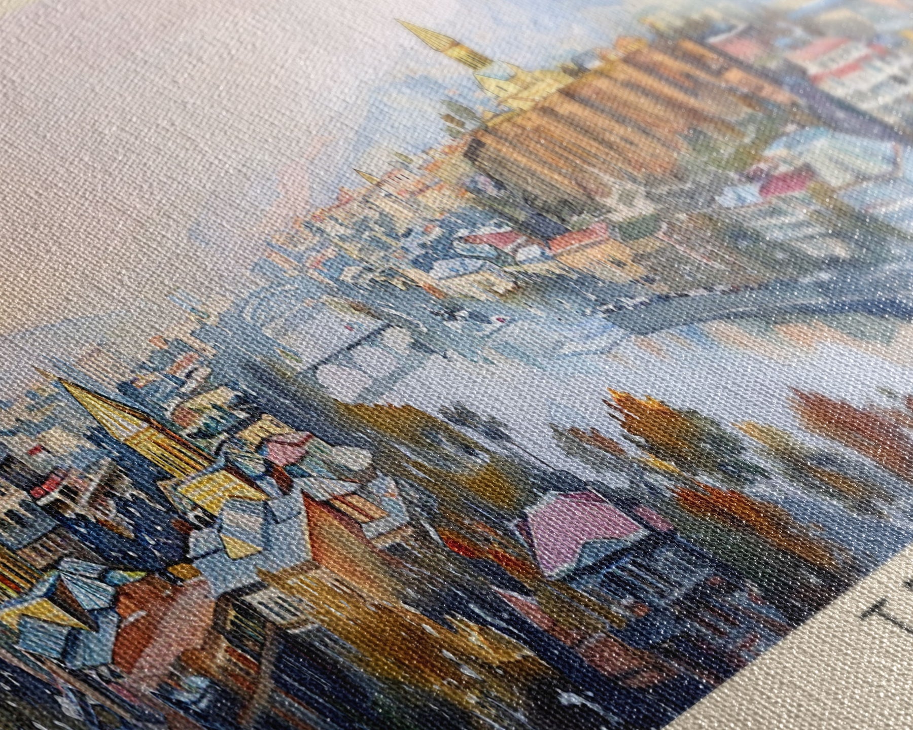 Most of our canvases are made in the USA, with the exception of canvases ordered with the light oak unstained frames, and any large canvases (24x48, 30x60, 16x48 and 20x60) ordered WITH a frame. These are temporarily made in and shipped from Europe, while we try to find a more consistent supplier in the USA.