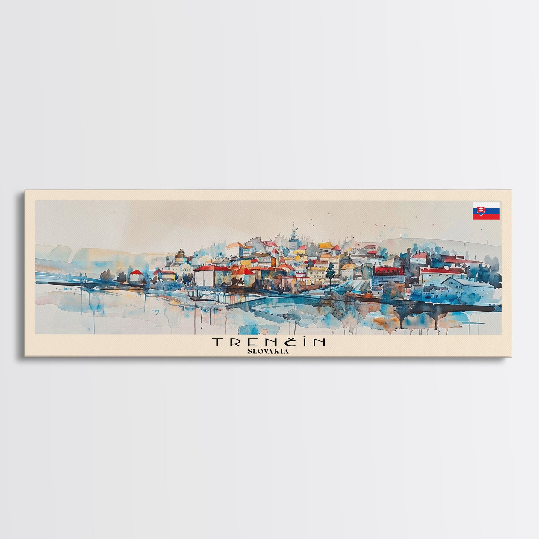 Trencin Slovakia Travel Art, City Art, Framed Canvas Print or Metal Wall Art, Europe Travel Poster, Panoramic Wall Art, Extra Wide Wall Art