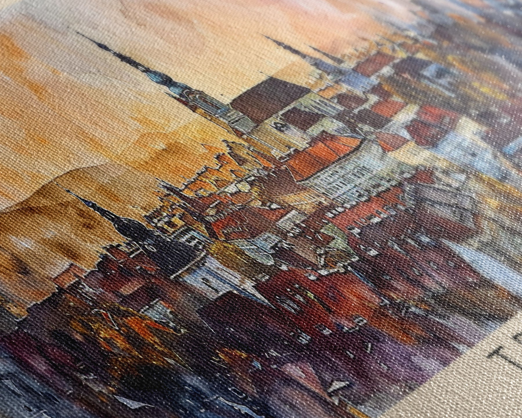 Most of our canvases are made in the USA, with the exception of canvases ordered with the light oak unstained frames, and any large canvases (24x48, 30x60, 16x48 and 20x60) ordered WITH a frame. These are temporarily made in and shipped from Europe, while we try to find a more consistent supplier in the USA.