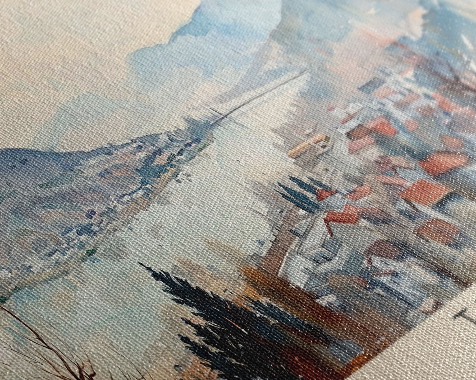Most of our canvases are made in the USA, with the exception of canvases ordered with the light oak unstained frames, and any large canvases (24x48, 30x60, 16x48 and 20x60) ordered WITH a frame. These are temporarily made in and shipped from Europe, while we try to find a more consistent supplier in the USA.