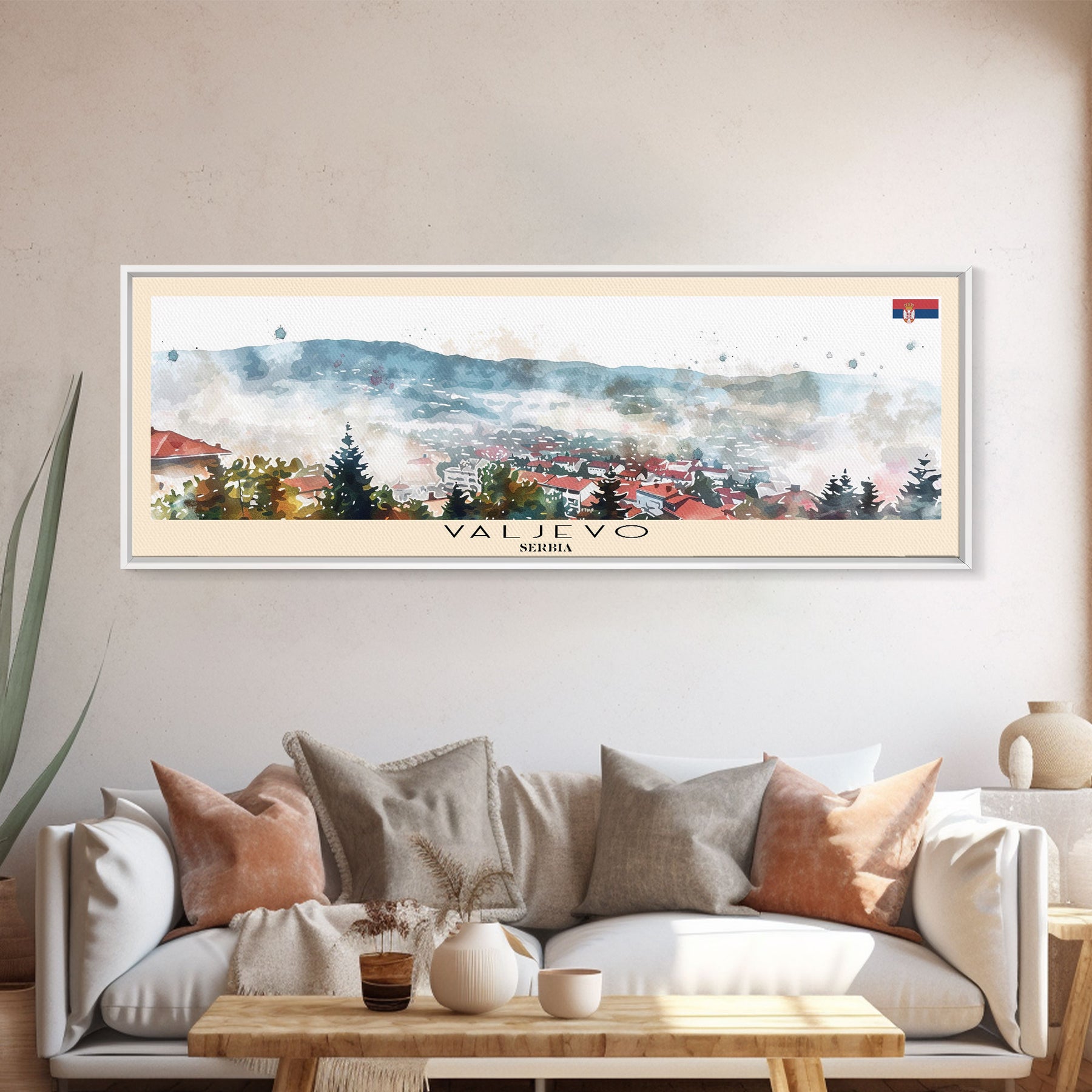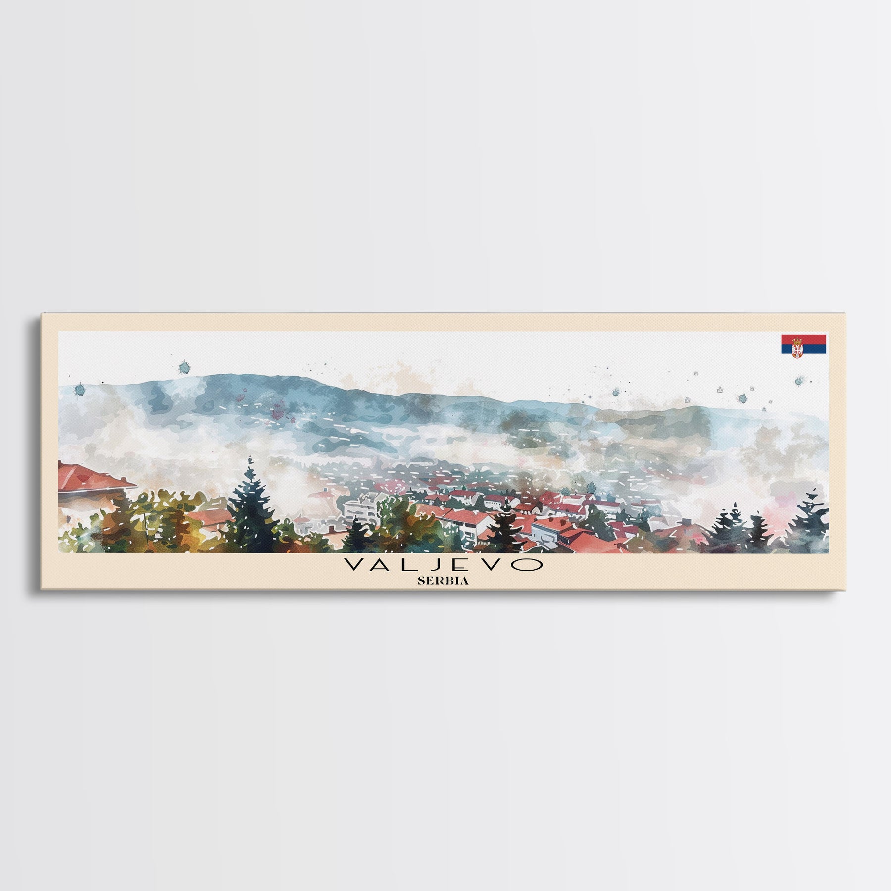 Valjevo Serbia Panoramic Travel Poster, Framed Canvas Print or Metal Wall Art, Travel Art, Home Decor, Panoramic Painting, Midcentury Art