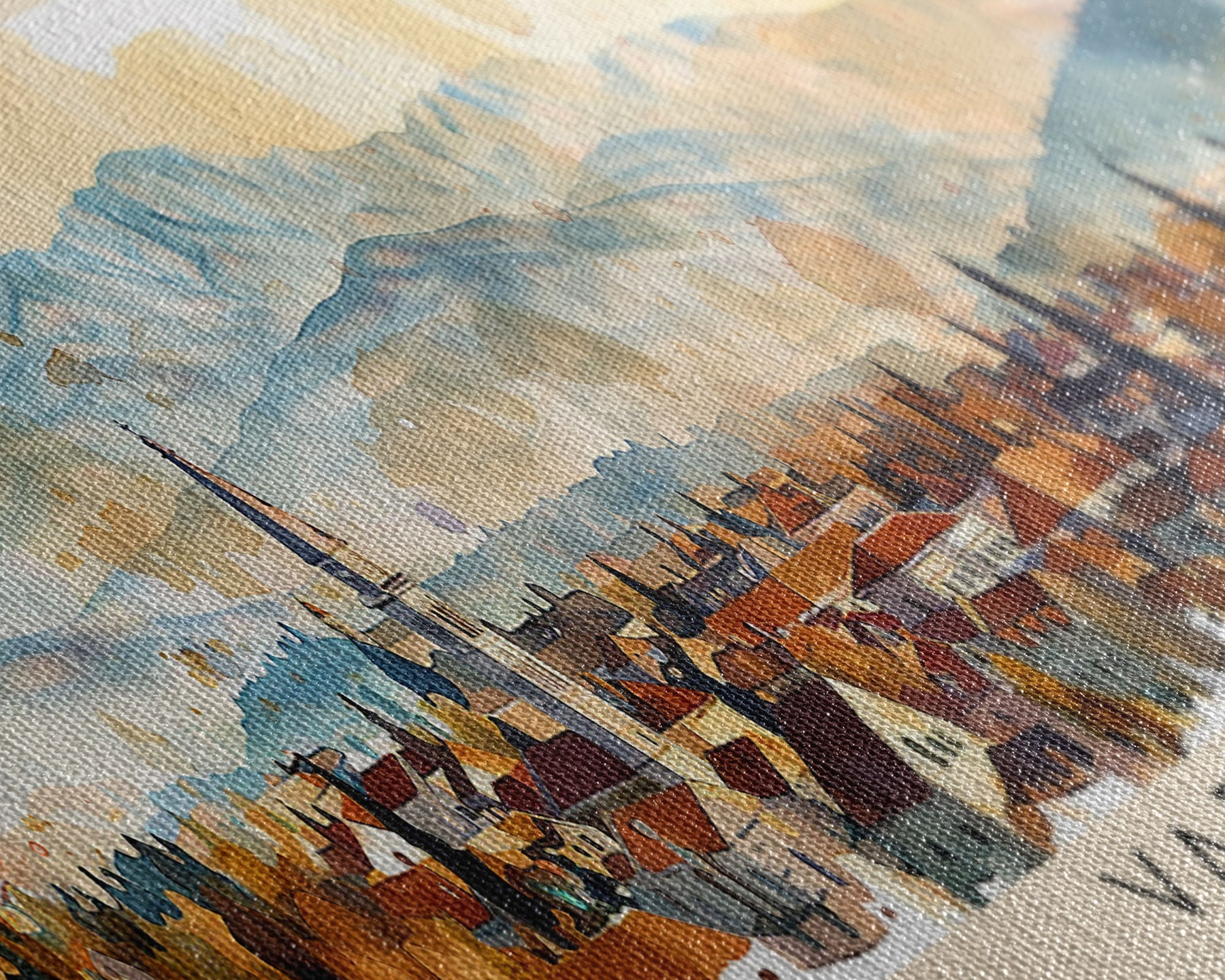 Most of our canvases are made in the USA, with the exception of canvases ordered with the light oak unstained frames, and any large canvases (24x48, 30x60, 16x48 and 20x60) ordered WITH a frame. These are temporarily made in and shipped from Europe, while we try to find a more consistent supplier in the USA.