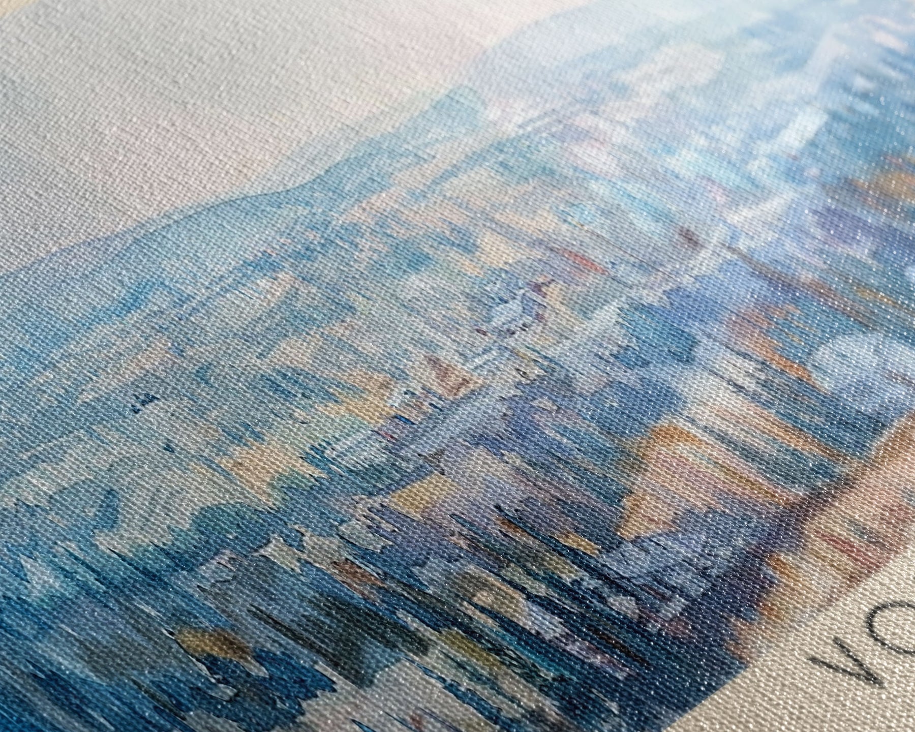 Most of our canvases are made in the USA, with the exception of canvases ordered with the light oak unstained frames, and any large canvases (24x48, 30x60, 16x48 and 20x60) ordered WITH a frame. These are temporarily made in and shipped from Europe, while we try to find a more consistent supplier in the USA.