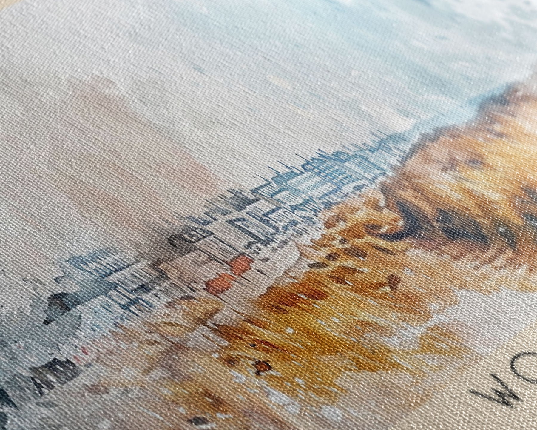 Most of our canvases are made in the USA, with the exception of canvases ordered with the light oak unstained frames, and any large canvases (24x48, 30x60, 16x48 and 20x60) ordered WITH a frame. These are temporarily made in and shipped from Europe, while we try to find a more consistent supplier in the USA.