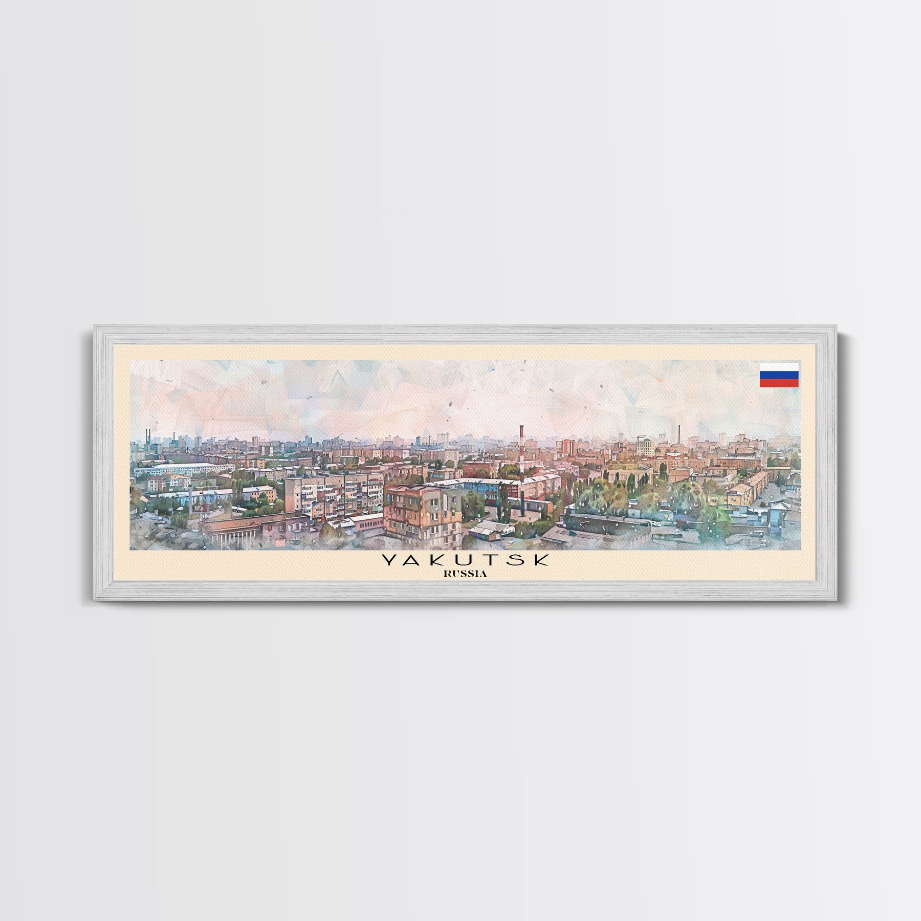 Yakutsk Russia Panoramic Travel Poster, Framed Canvas Print or Metal Wall Art, Travel Art, Home Decor, Panoramic Painting, Midcentury Art