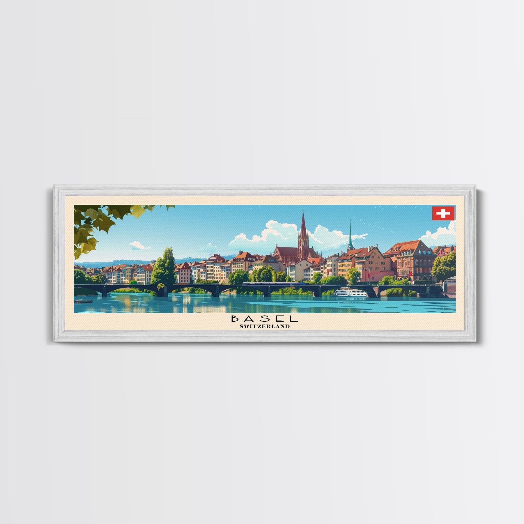 Basel SwitzerlandTravel Art, City Art, Framed Canvas Print or Metal Wall Art, Europe Travel Poster, Panoramic Wall Art, Extra Wide Wall Art