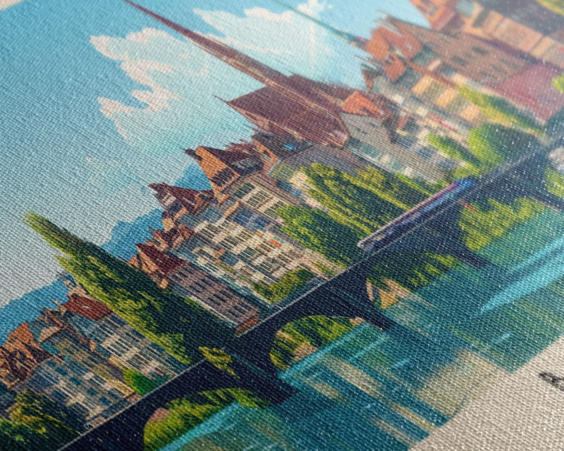 Most of our canvases are made in the USA, with the exception of canvases ordered with the light oak unstained frames, and any large canvases (24x48, 30x60, 16x48 and 20x60) ordered WITH a frame. These are temporarily made in and shipped from Europe, while we try to find a more consistent supplier in the USA.