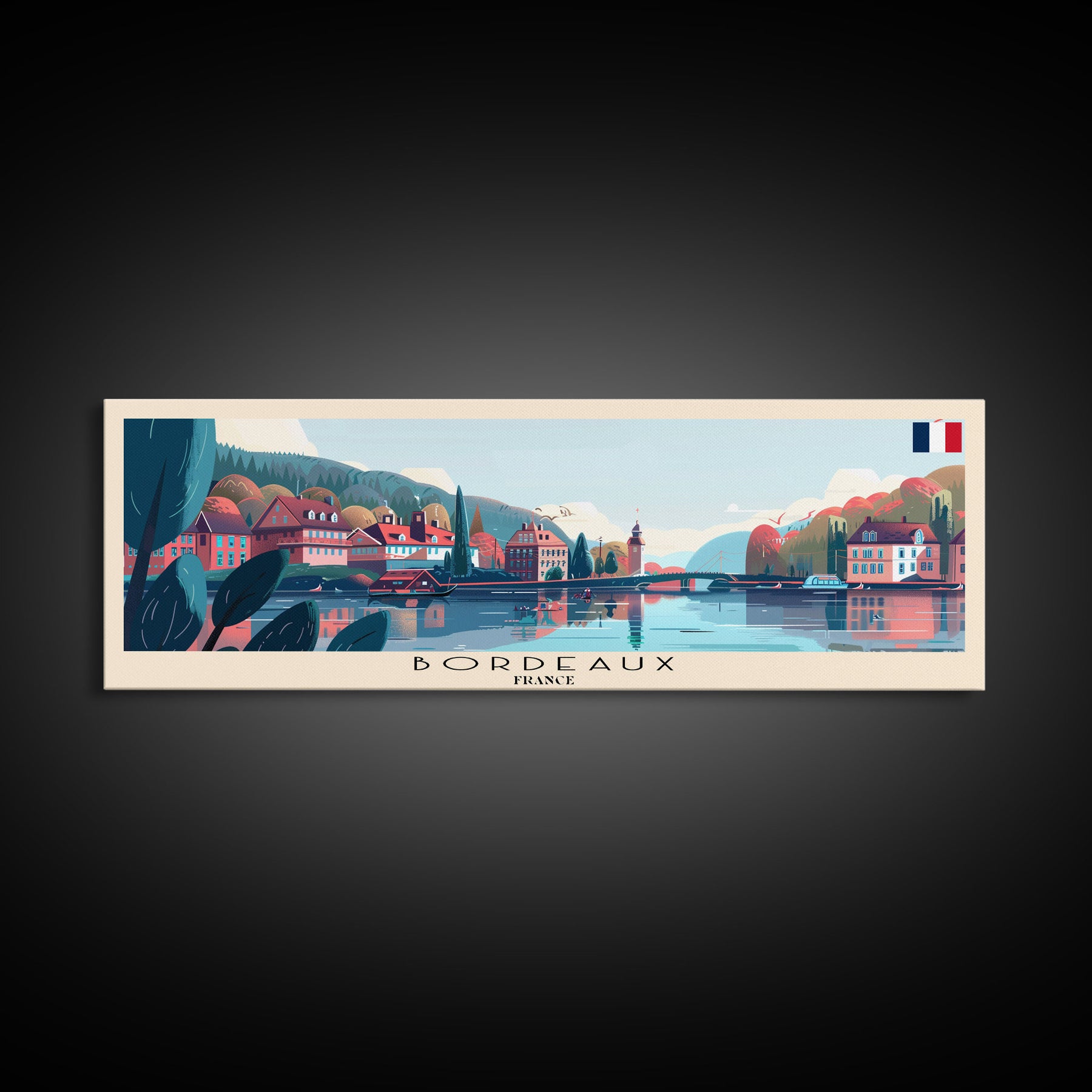 Bordeaux France Panoramic Travel Poster, Framed Canvas Print or Metal Wall Art, Travel Art, Home Decor, Panoramic Painting, Midcentury Art