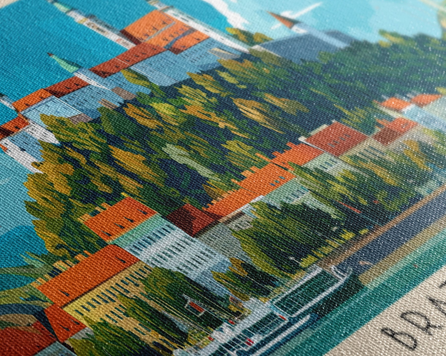 Most of our canvases are made in the USA, with the exception of canvases ordered with the light oak unstained frames, and any large canvases (24x48, 30x60, 16x48 and 20x60) ordered WITH a frame. These are temporarily made in and shipped from Europe, while we try to find a more consistent supplier in the USA.