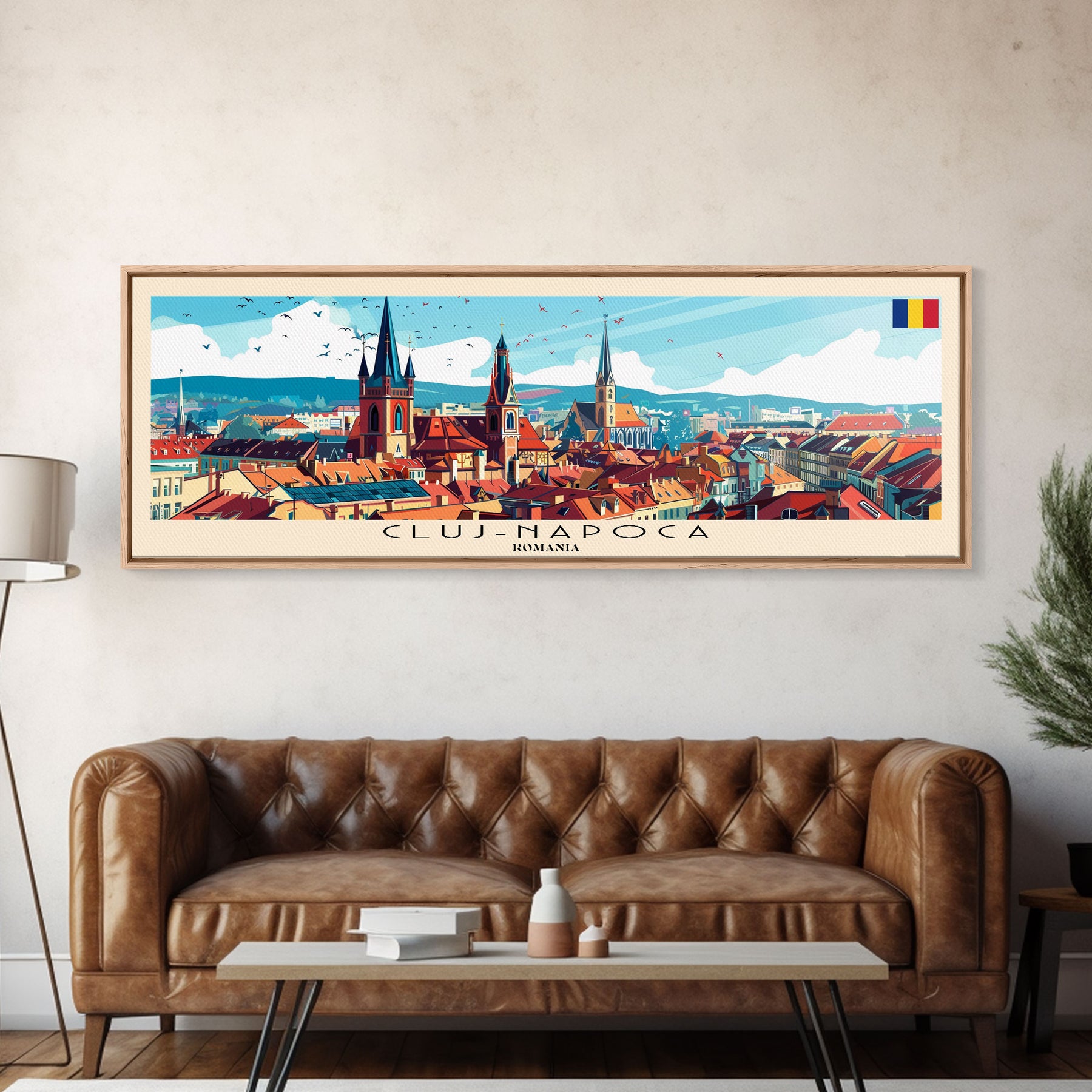 Cluj Napoca Romania Travel Print Wall Art, Panoramic City Art, Travel Art, Wall Decor, Vacation Gift, Framed Canvas Print Or Metal Art