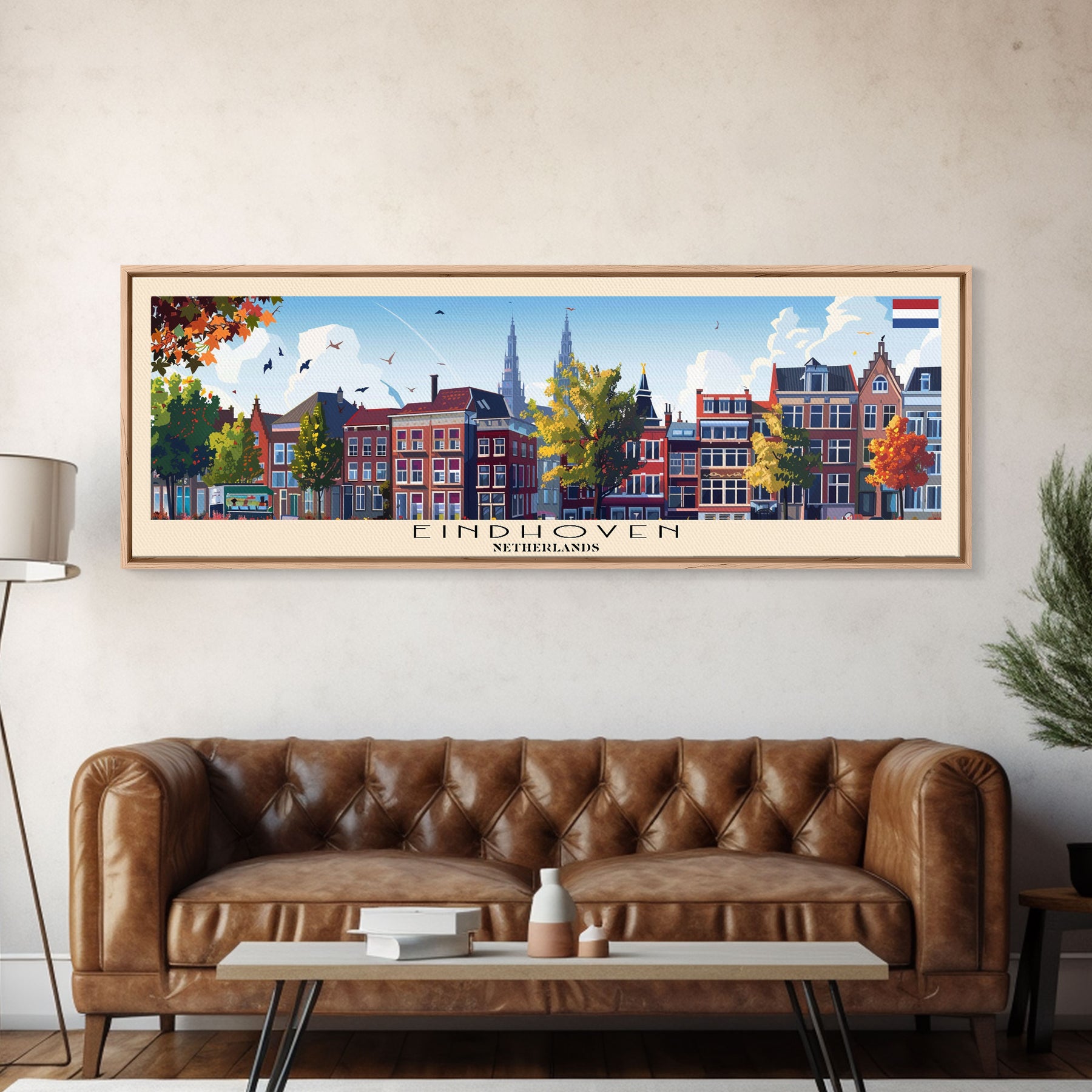 Eindhoven Netherlands Panoramic Travel Poster, Framed Canvas Print or Metal Wall Art, Travel Art, Home Decor, Panoramic Painting, Midcentury Art