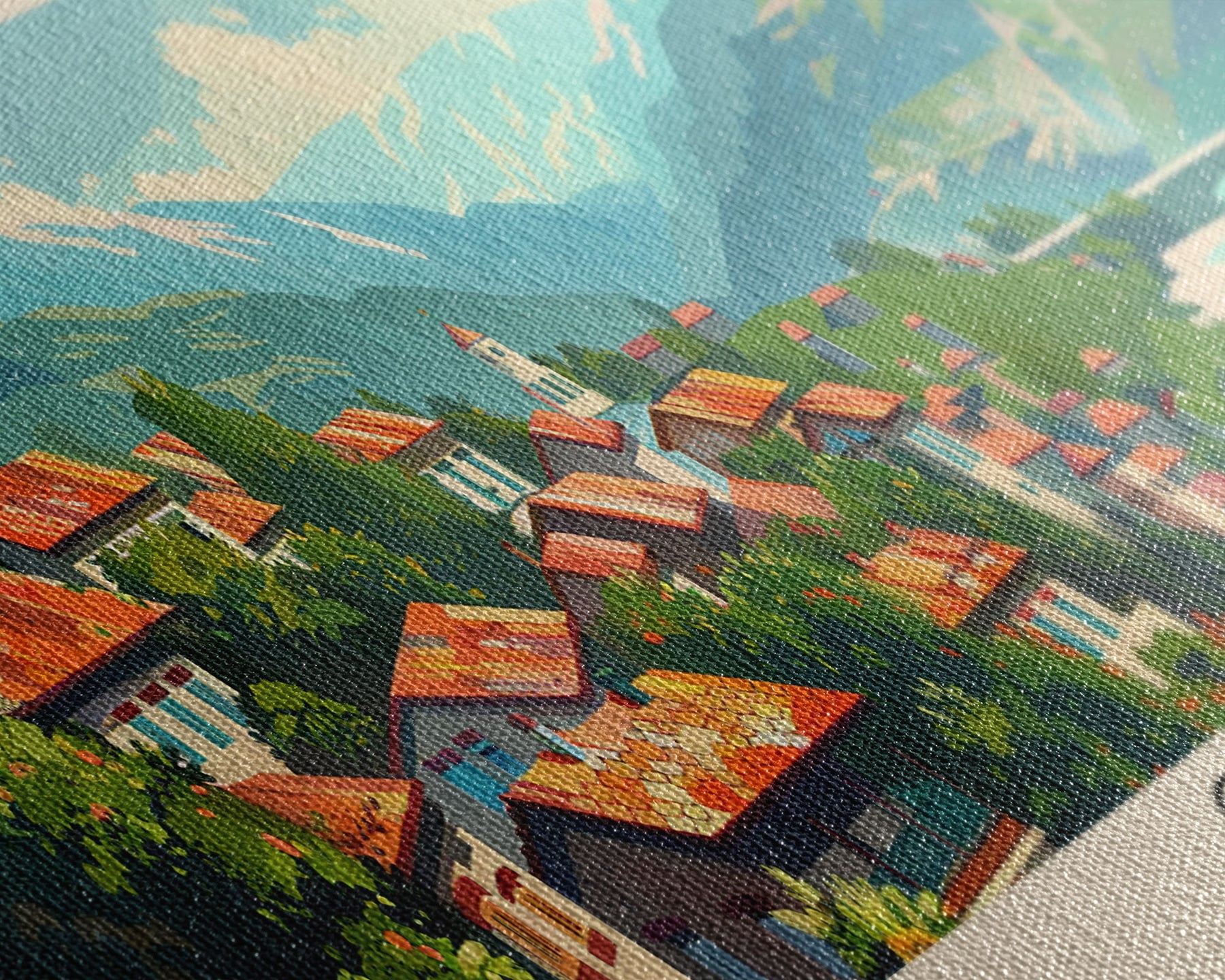 Most of our canvases are made in the USA, with the exception of canvases ordered with the light oak unstained frames, and any large canvases (24x48, 30x60, 16x48 and 20x60) ordered WITH a frame. These are temporarily made in and shipped from Europe, while we try to find a more consistent supplier in the USA.