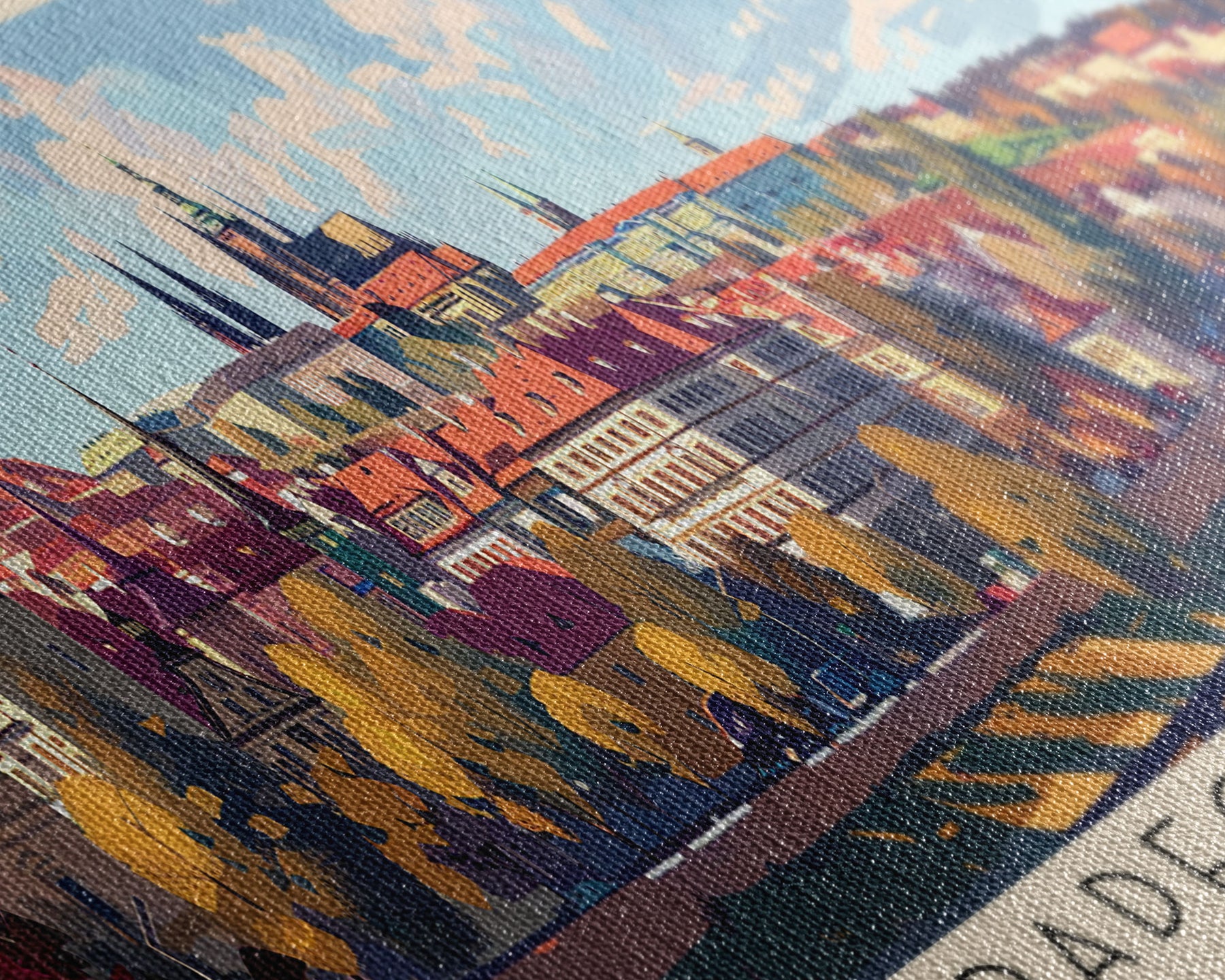 Most of our canvases are made in the USA, with the exception of canvases ordered with the light oak unstained frames, and any large canvases (24x48, 30x60, 16x48 and 20x60) ordered WITH a frame. These are temporarily made in and shipped from Europe, while we try to find a more consistent supplier in the USA.