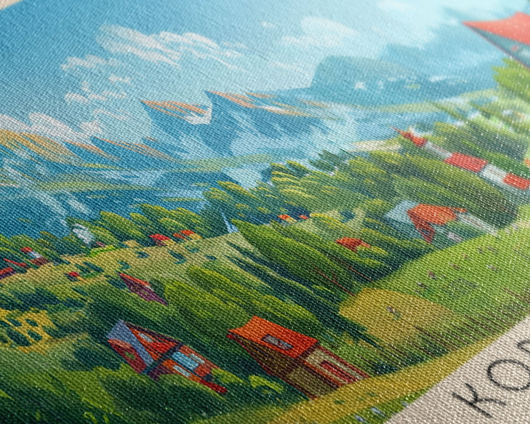 Most of our canvases are made in the USA, with the exception of canvases ordered with the light oak unstained frames, and any large canvases (24x48, 30x60, 16x48 and 20x60) ordered WITH a frame. These are temporarily made in and shipped from Europe, while we try to find a more consistent supplier in the USA.