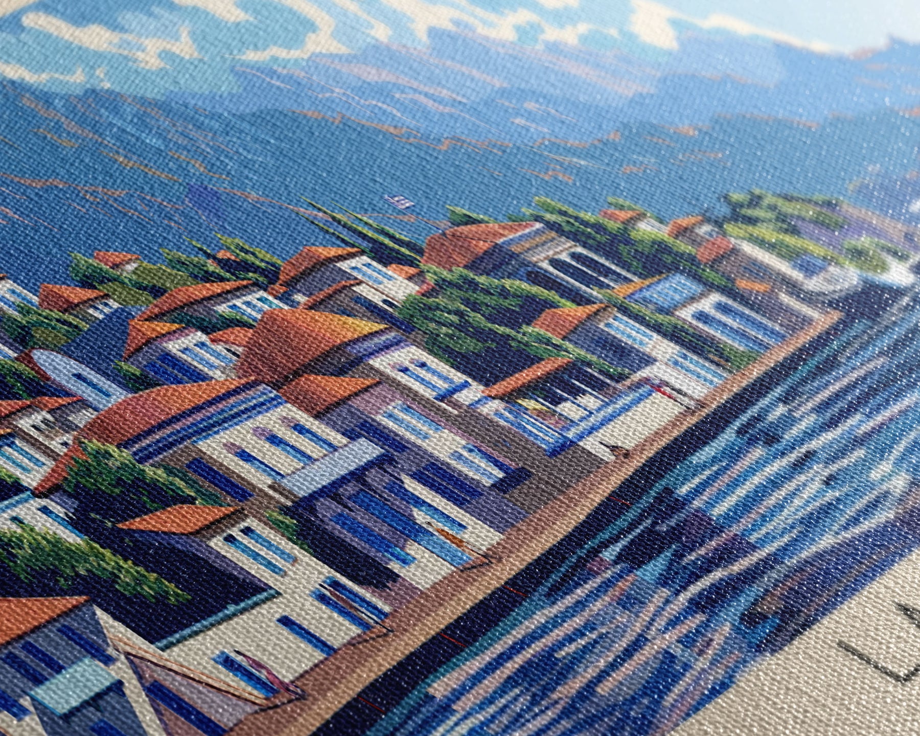 Most of our canvases are made in the USA, with the exception of canvases ordered with the light oak unstained frames, and any large canvases (24x48, 30x60, 16x48 and 20x60) ordered WITH a frame. These are temporarily made in and shipped from Europe, while we try to find a more consistent supplier in the USA.