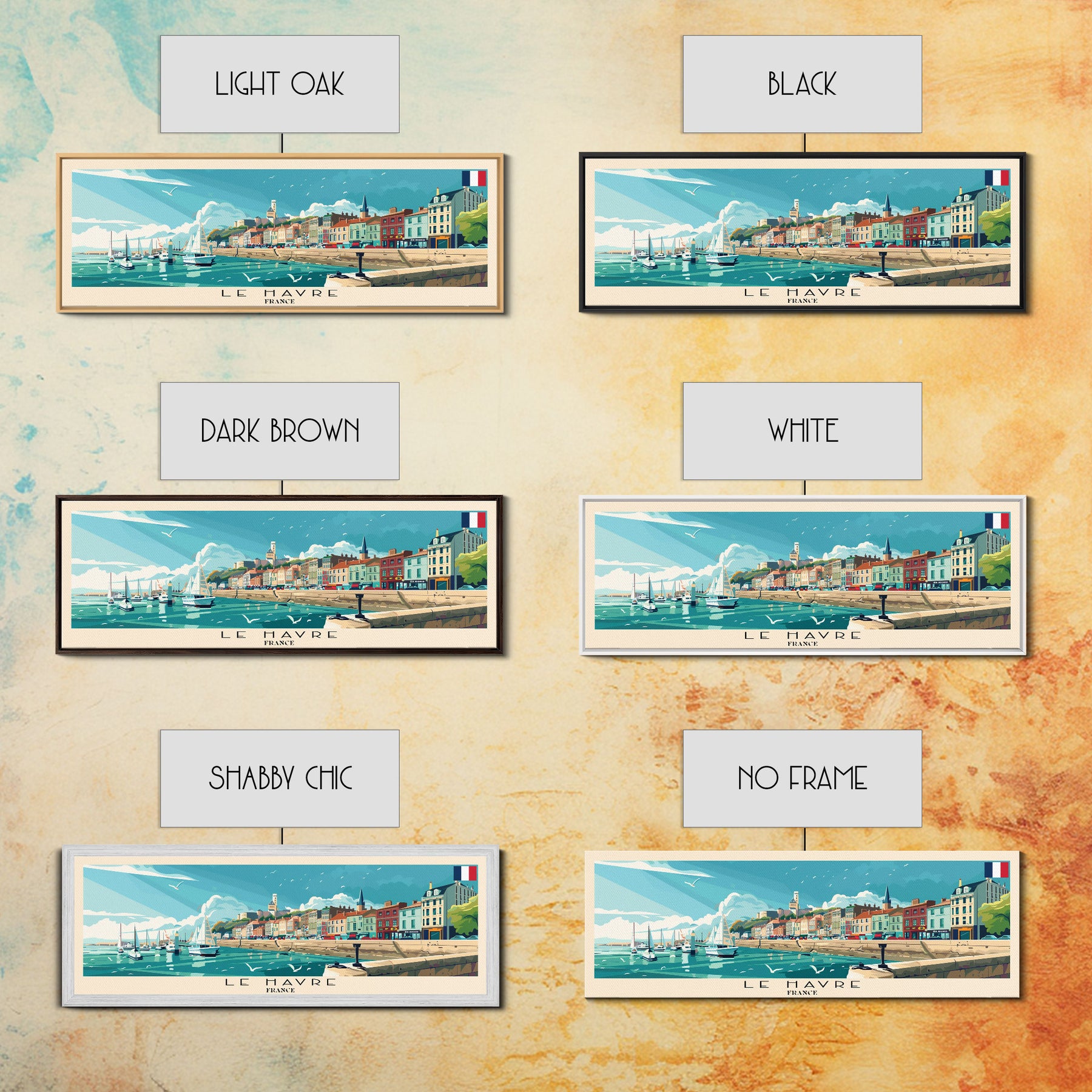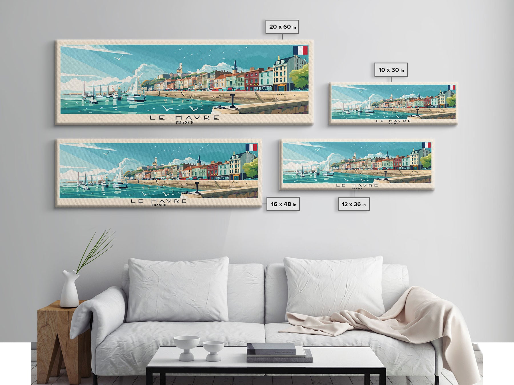 Le Havre France Panoramic Travel Poster, Framed Canvas Print or Metal Wall Art, Travel Art, Home Decor, Panoramic Painting, Midcentury Art