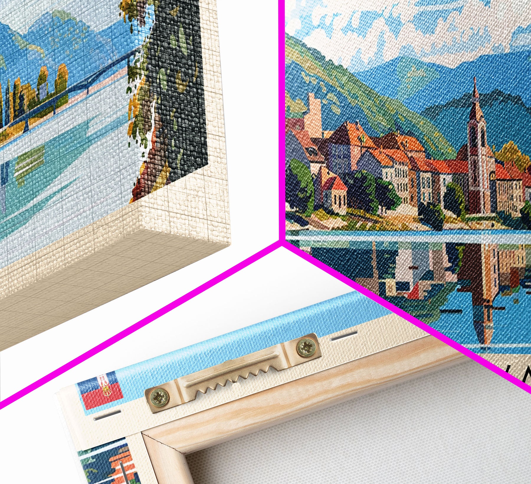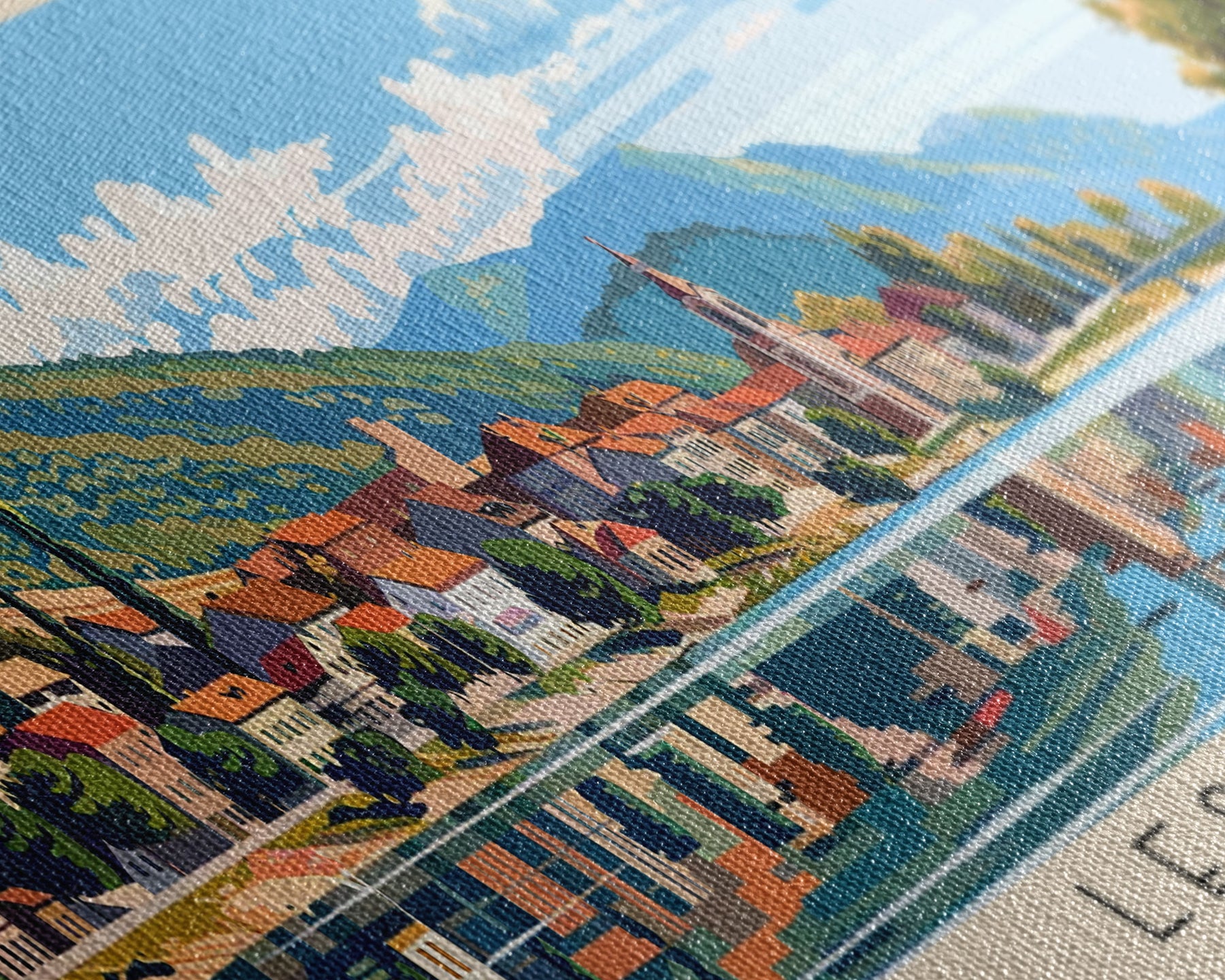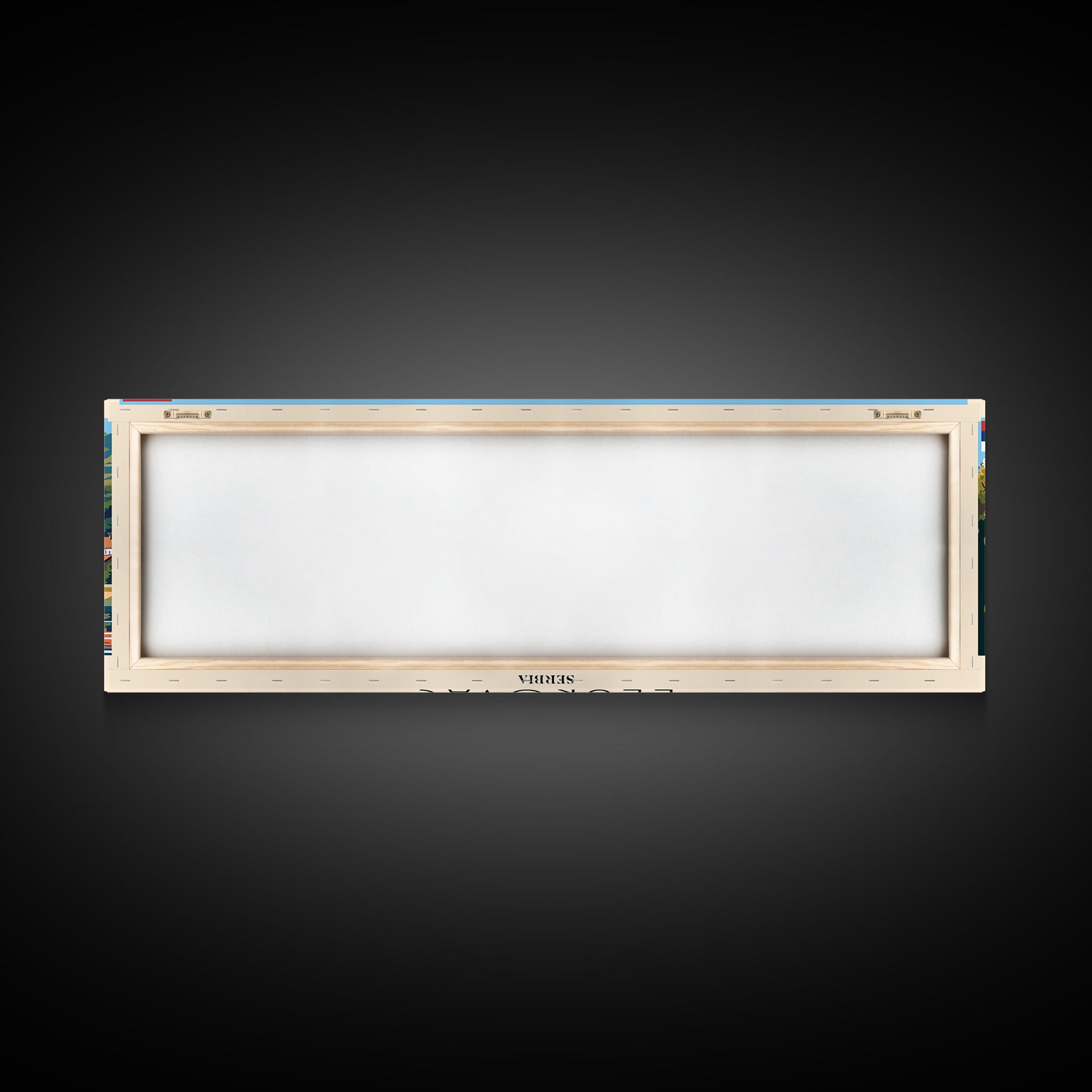 Most of our canvases are made in the USA, with the exception of canvases ordered with the light oak unstained frames, and any large canvases (24x48, 30x60, 16x48 and 20x60) ordered WITH a frame. These are temporarily made in and shipped from Europe, while we try to find a more consistent supplier in the USA.
