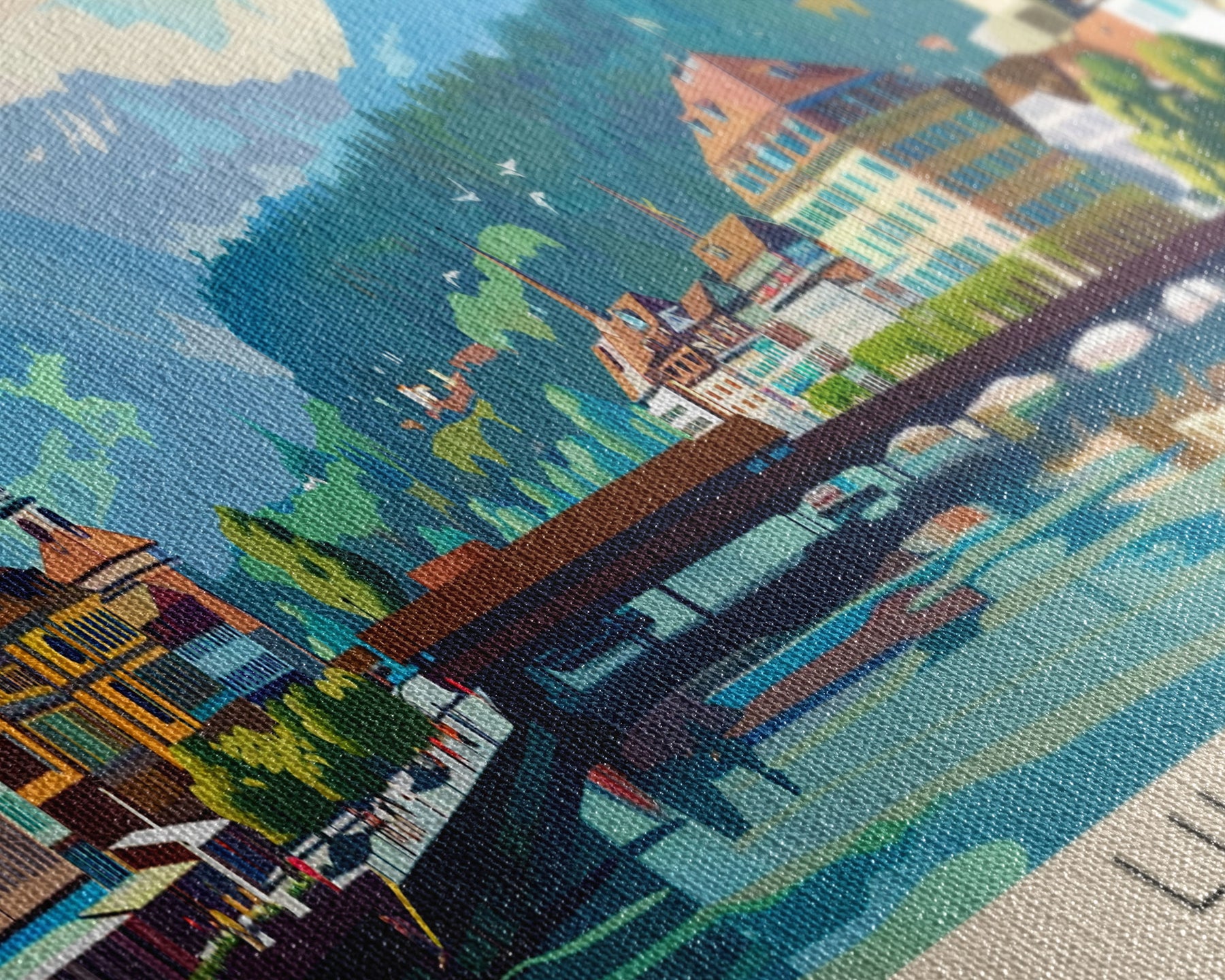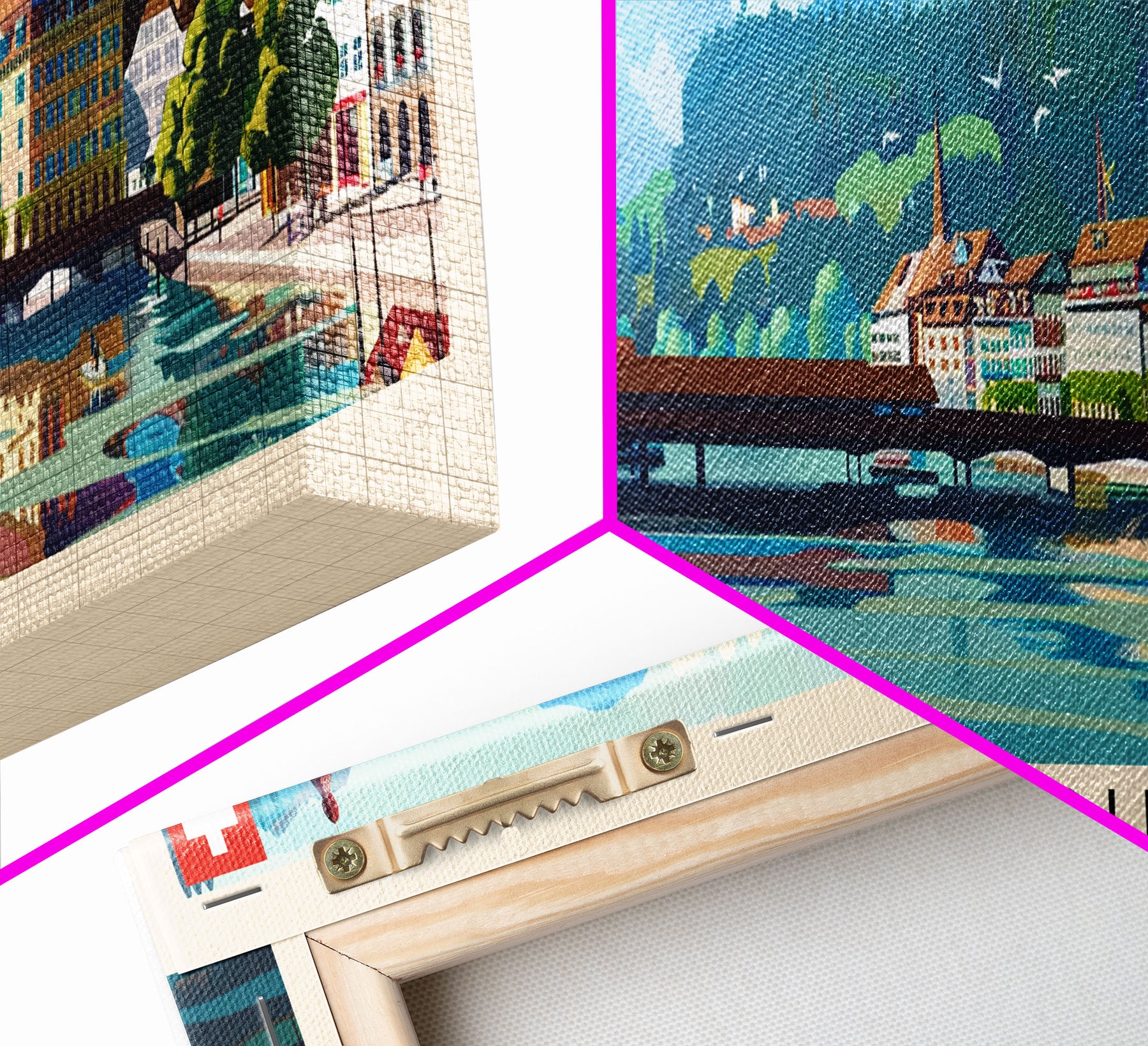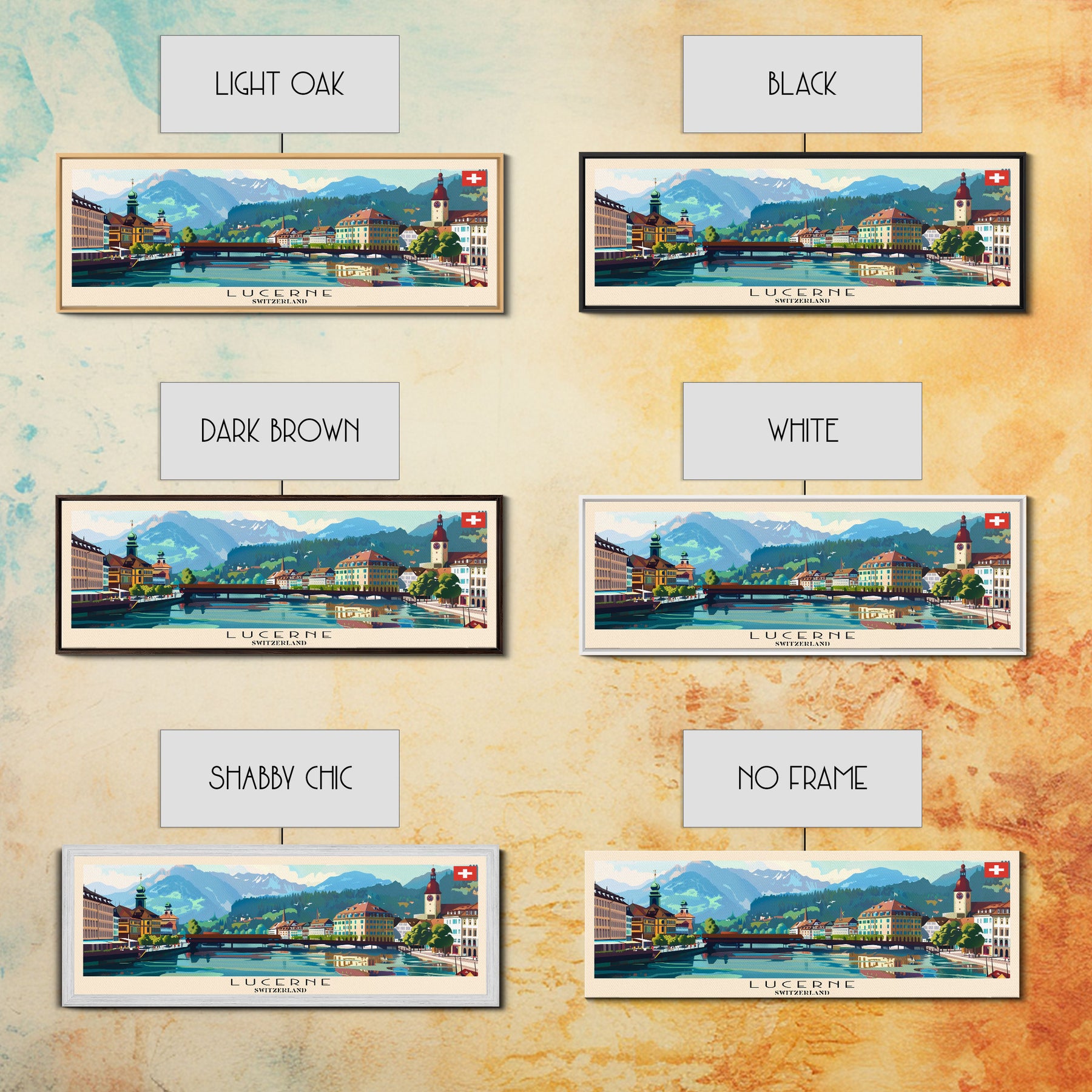 Lucerne Switzerland Travel Art, City Art, Framed Canvas Print or Metal Wall Art, Europe Travel Poster, Panoramic Wall Art, Extra Wide Wall Art