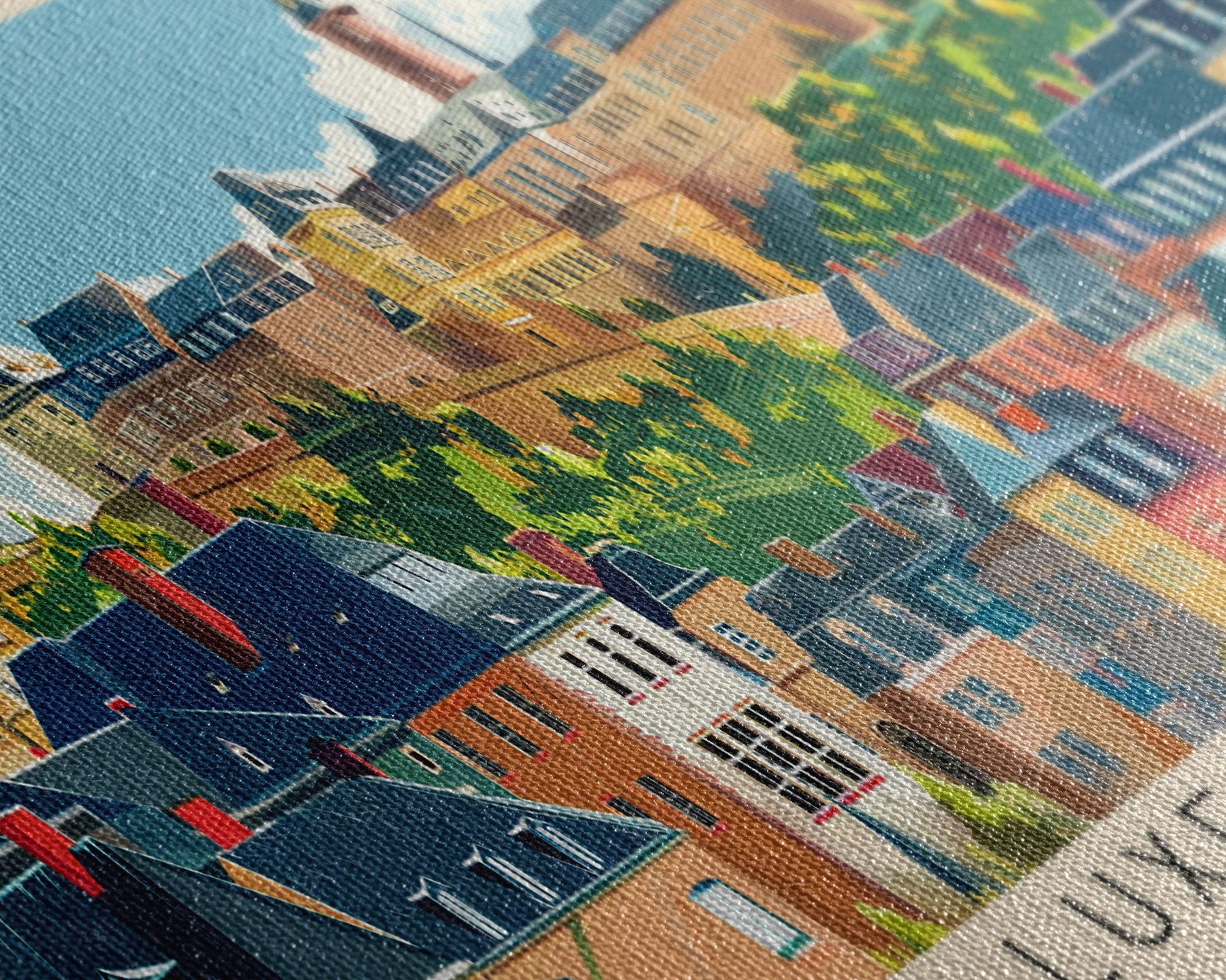 Most of our canvases are made in the USA, with the exception of canvases ordered with the light oak unstained frames, and any large canvases (24x48, 30x60, 16x48 and 20x60) ordered WITH a frame. These are temporarily made in and shipped from Europe, while we try to find a more consistent supplier in the USA.