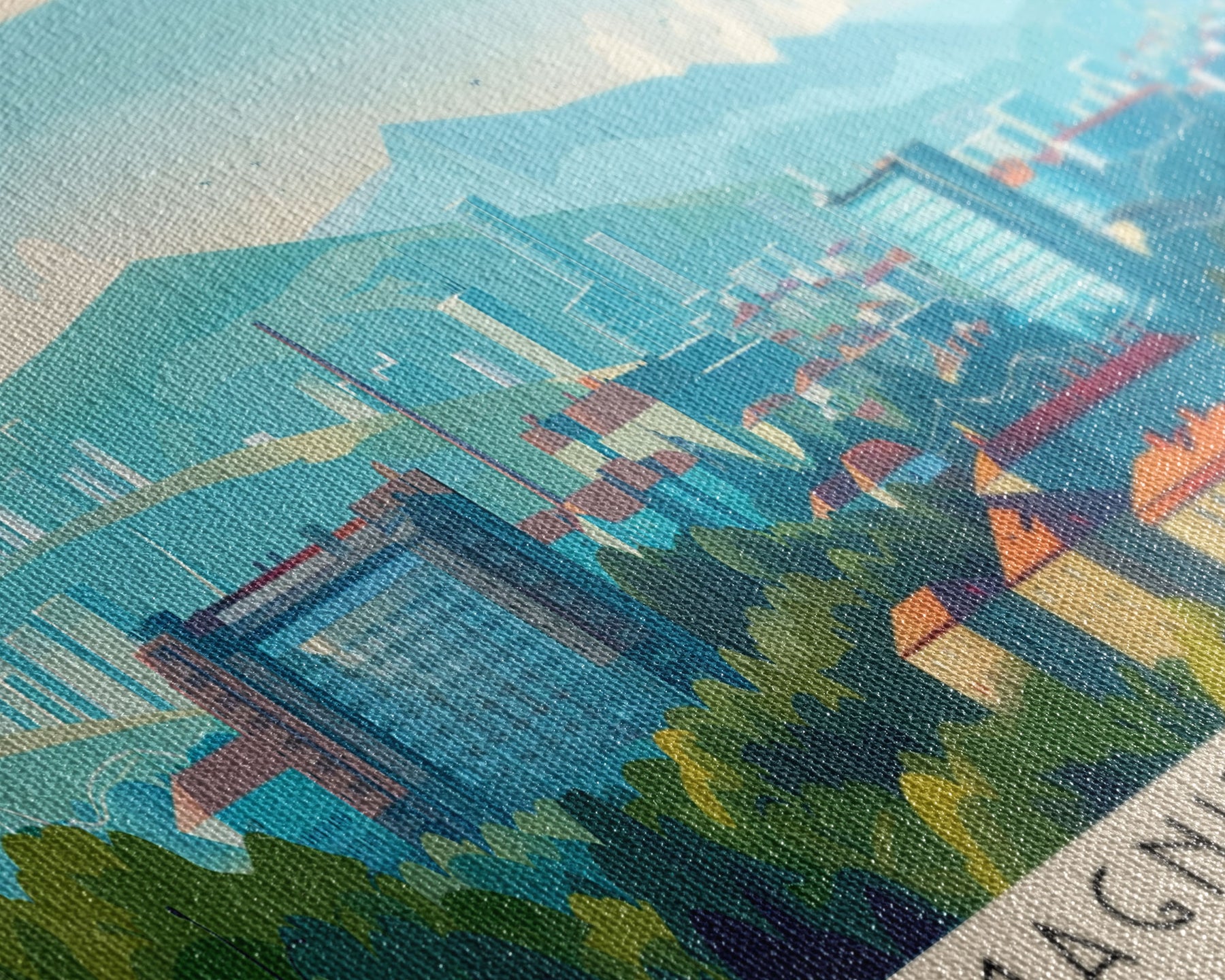 Most of our canvases are made in the USA, with the exception of canvases ordered with the light oak unstained frames, and any large canvases (24x48, 30x60, 16x48 and 20x60) ordered WITH a frame. These are temporarily made in and shipped from Europe, while we try to find a more consistent supplier in the USA.