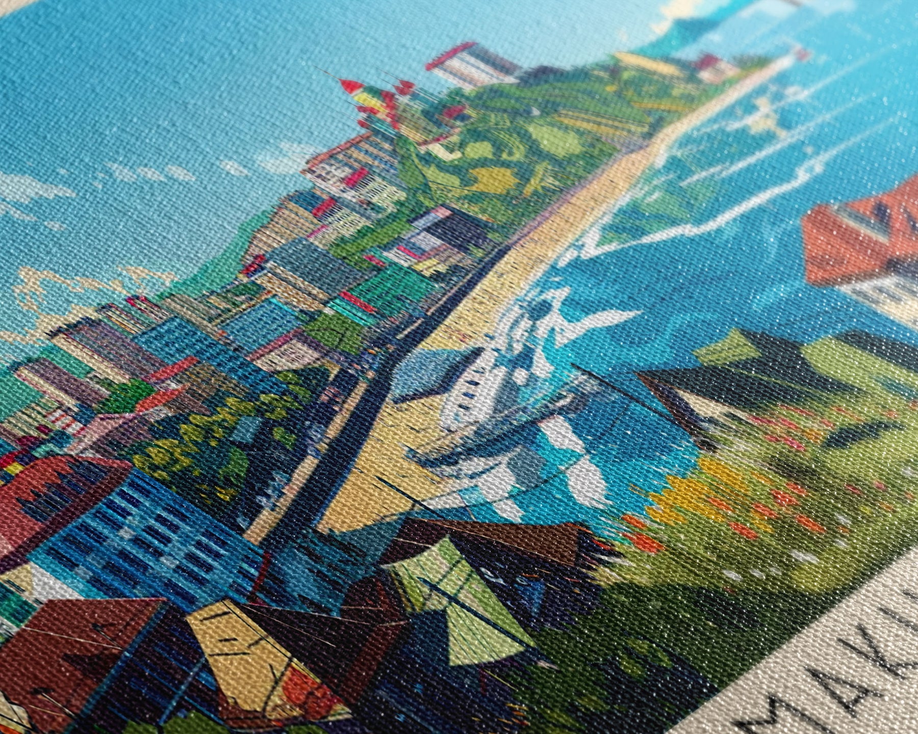 Most of our canvases are made in the USA, with the exception of canvases ordered with the light oak unstained frames, and any large canvases (24x48, 30x60, 16x48 and 20x60) ordered WITH a frame. These are temporarily made in and shipped from Europe, while we try to find a more consistent supplier in the USA.