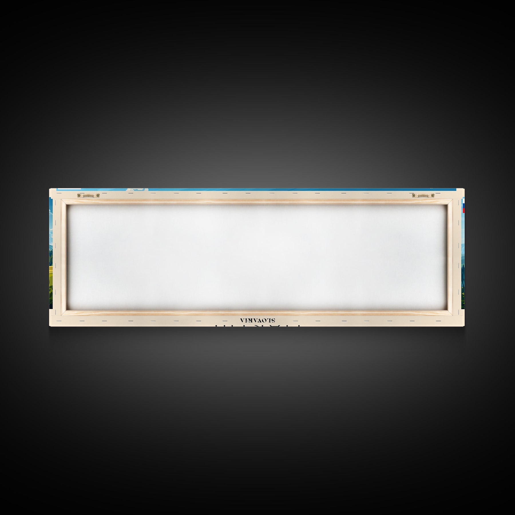 Most of our canvases are made in the USA, with the exception of canvases ordered with the light oak unstained frames, and any large canvases (24x48, 30x60, 16x48 and 20x60) ordered WITH a frame. These are temporarily made in and shipped from Europe, while we try to find a more consistent supplier in the USA.