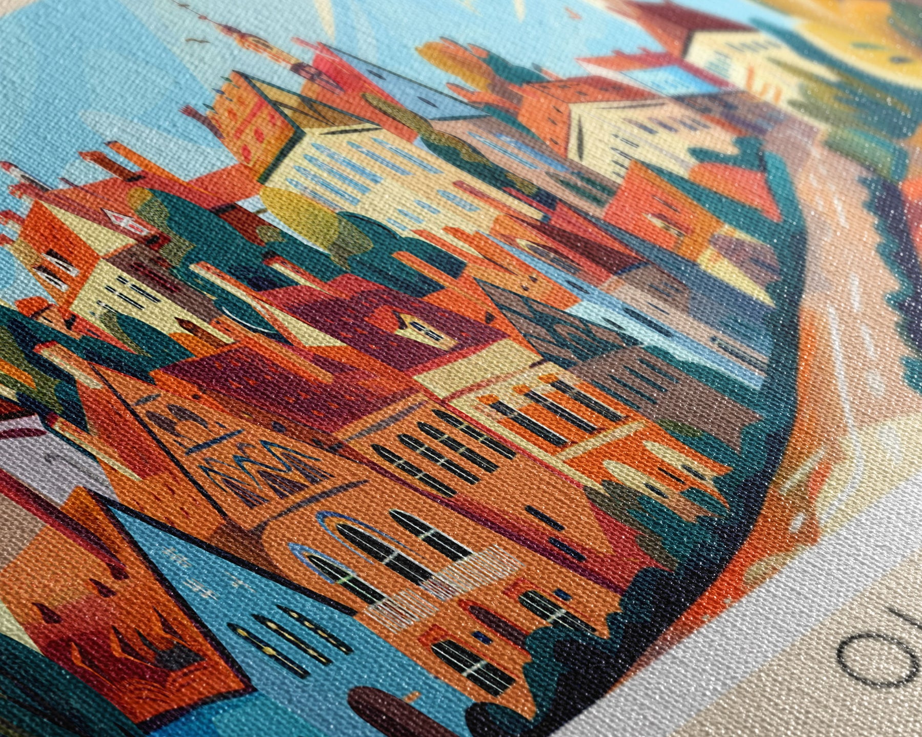 Most of our canvases are made in the USA, with the exception of canvases ordered with the light oak unstained frames, and any large canvases (24x48, 30x60, 16x48 and 20x60) ordered WITH a frame. These are temporarily made in and shipped from Europe, while we try to find a more consistent supplier in the USA.