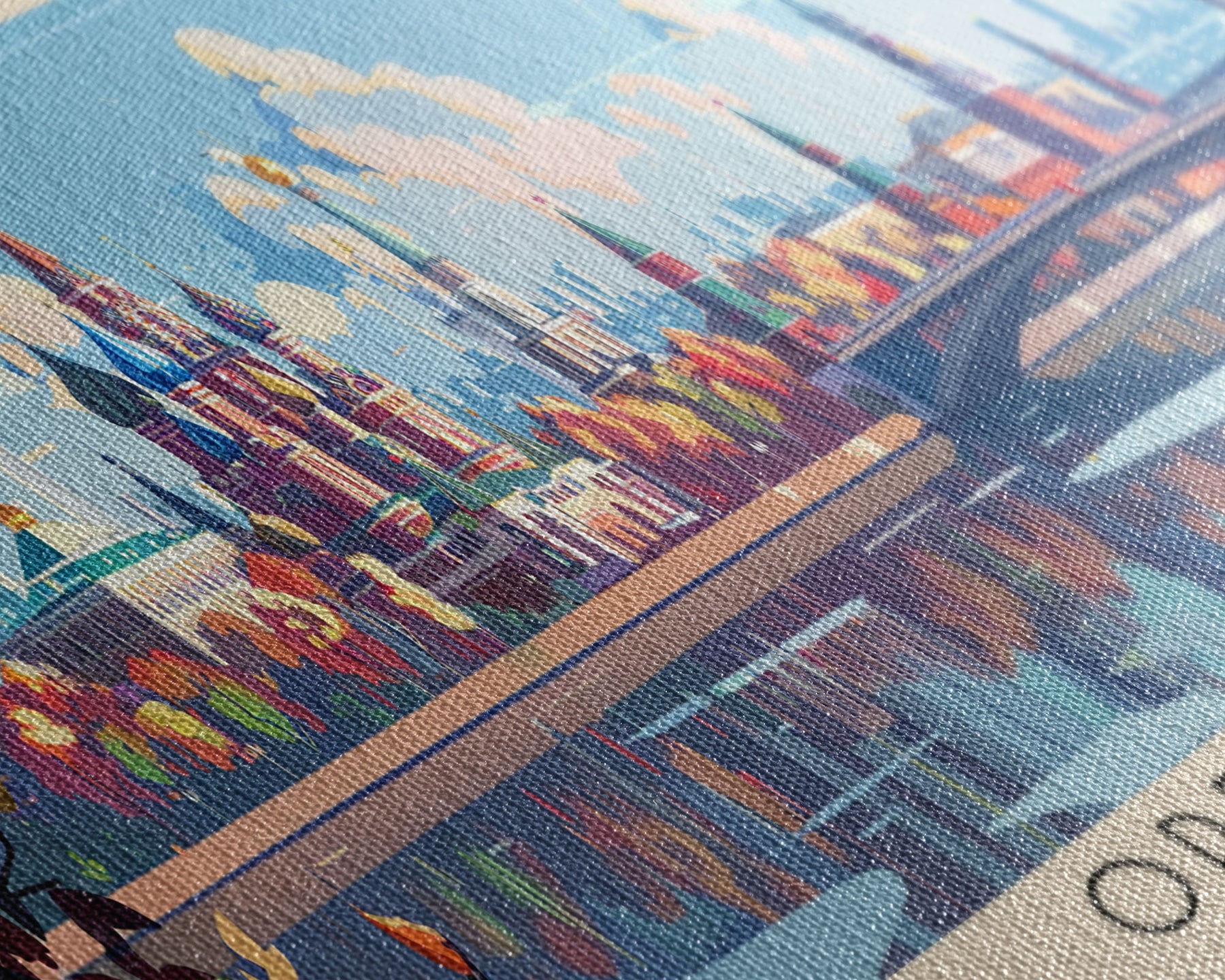 Most of our canvases are made in the USA, with the exception of canvases ordered with the light oak unstained frames, and any large canvases (24x48, 30x60, 16x48 and 20x60) ordered WITH a frame. These are temporarily made in and shipped from Europe, while we try to find a more consistent supplier in the USA.