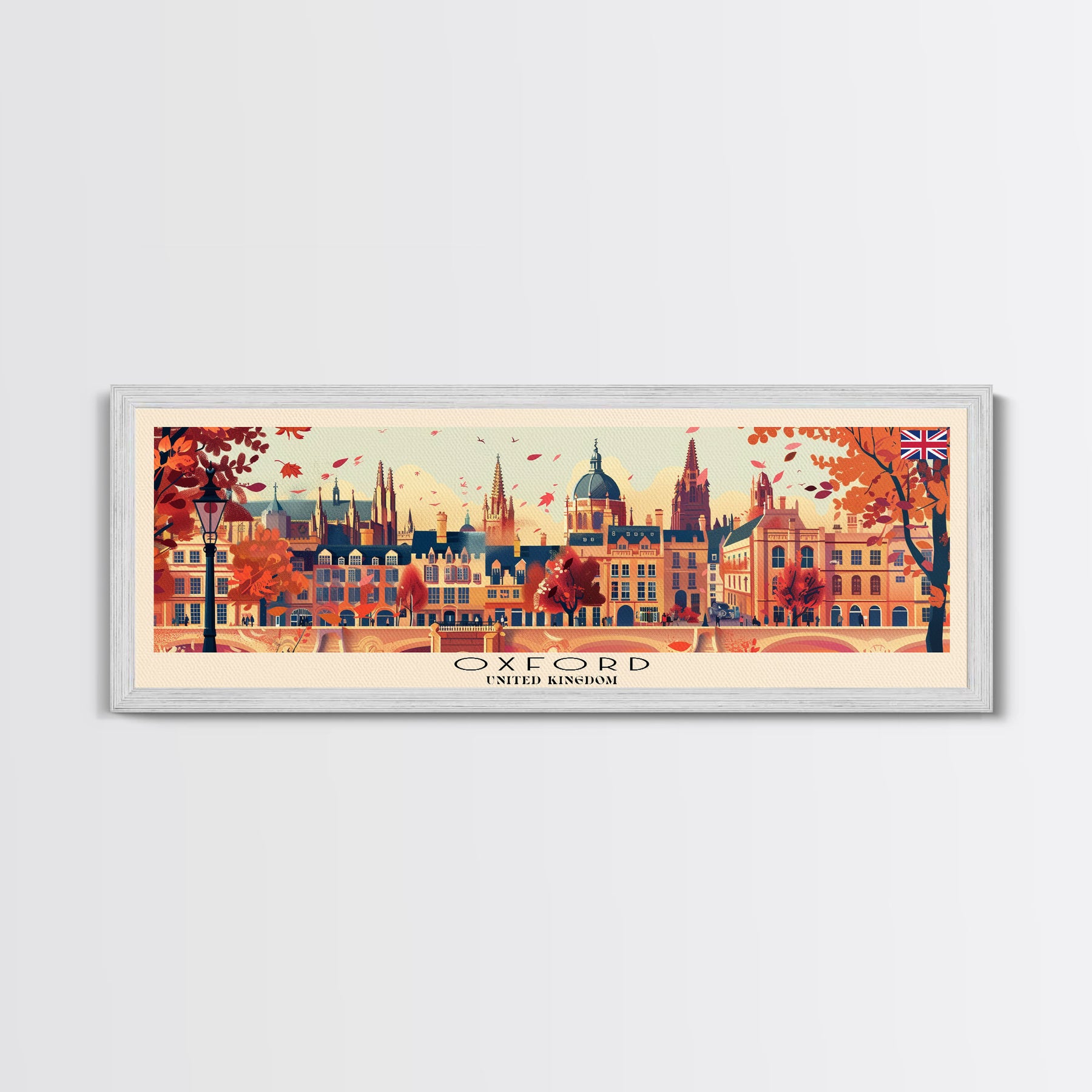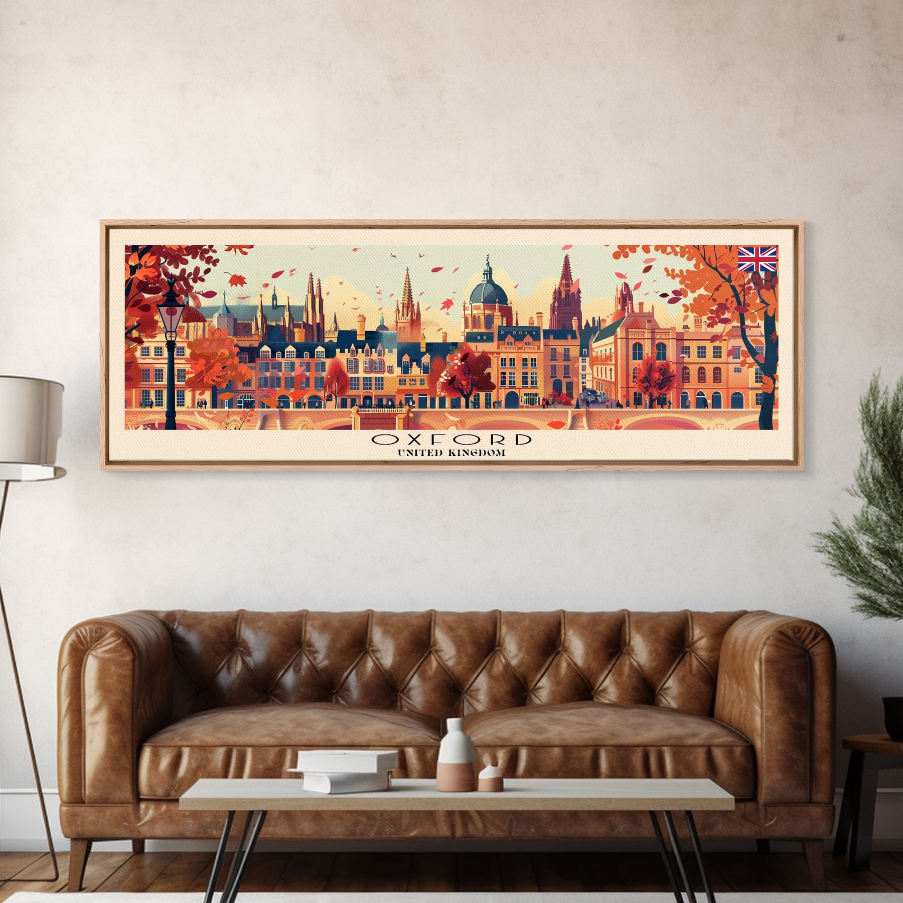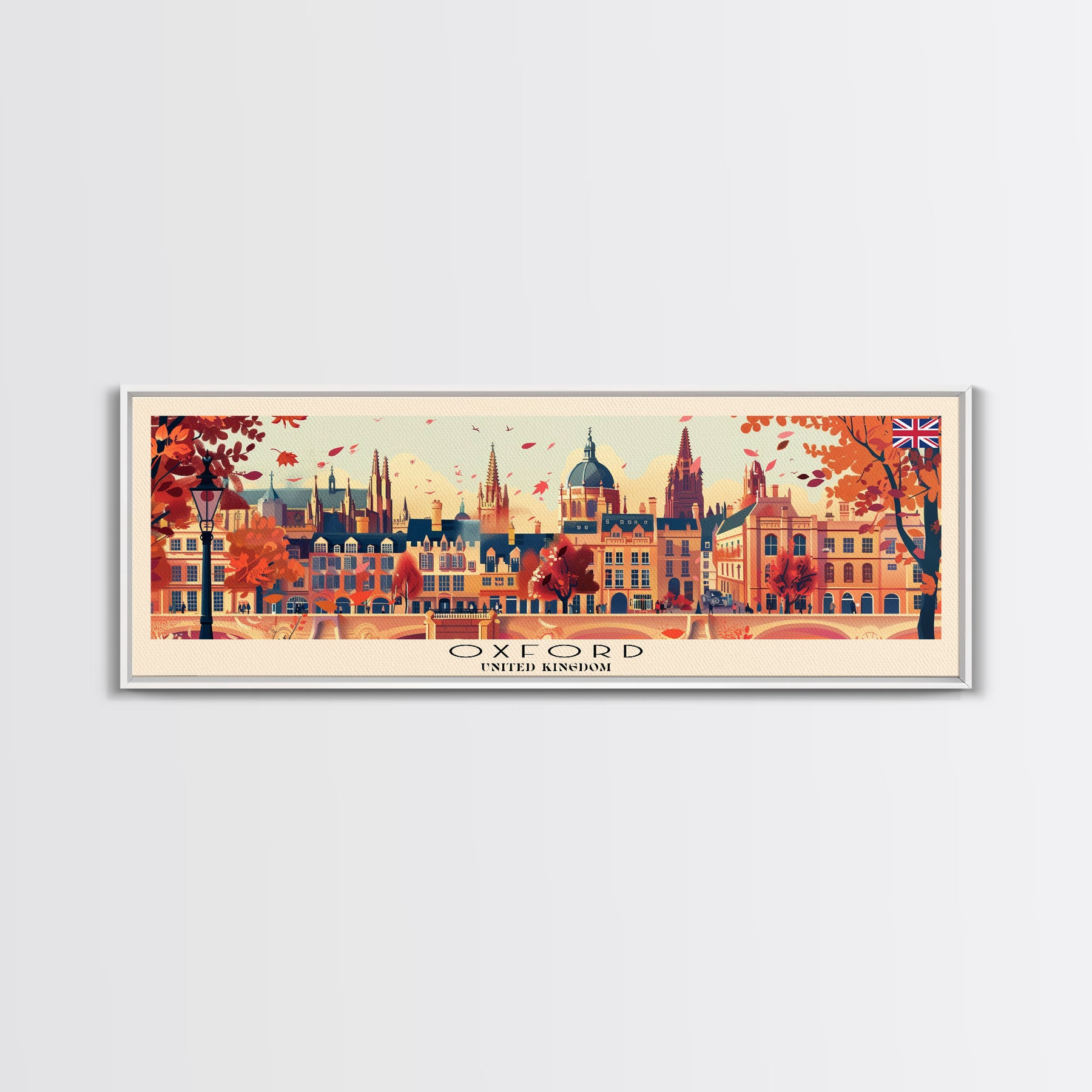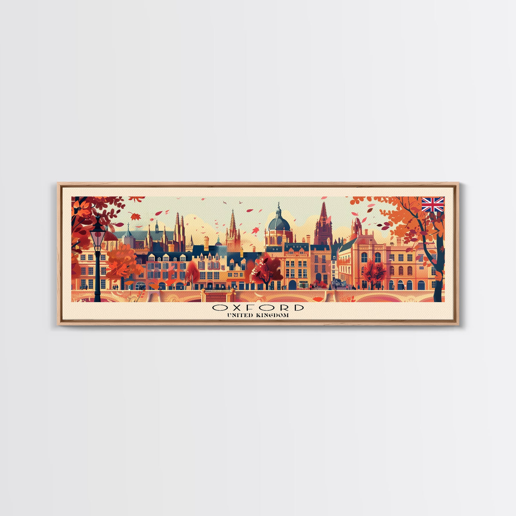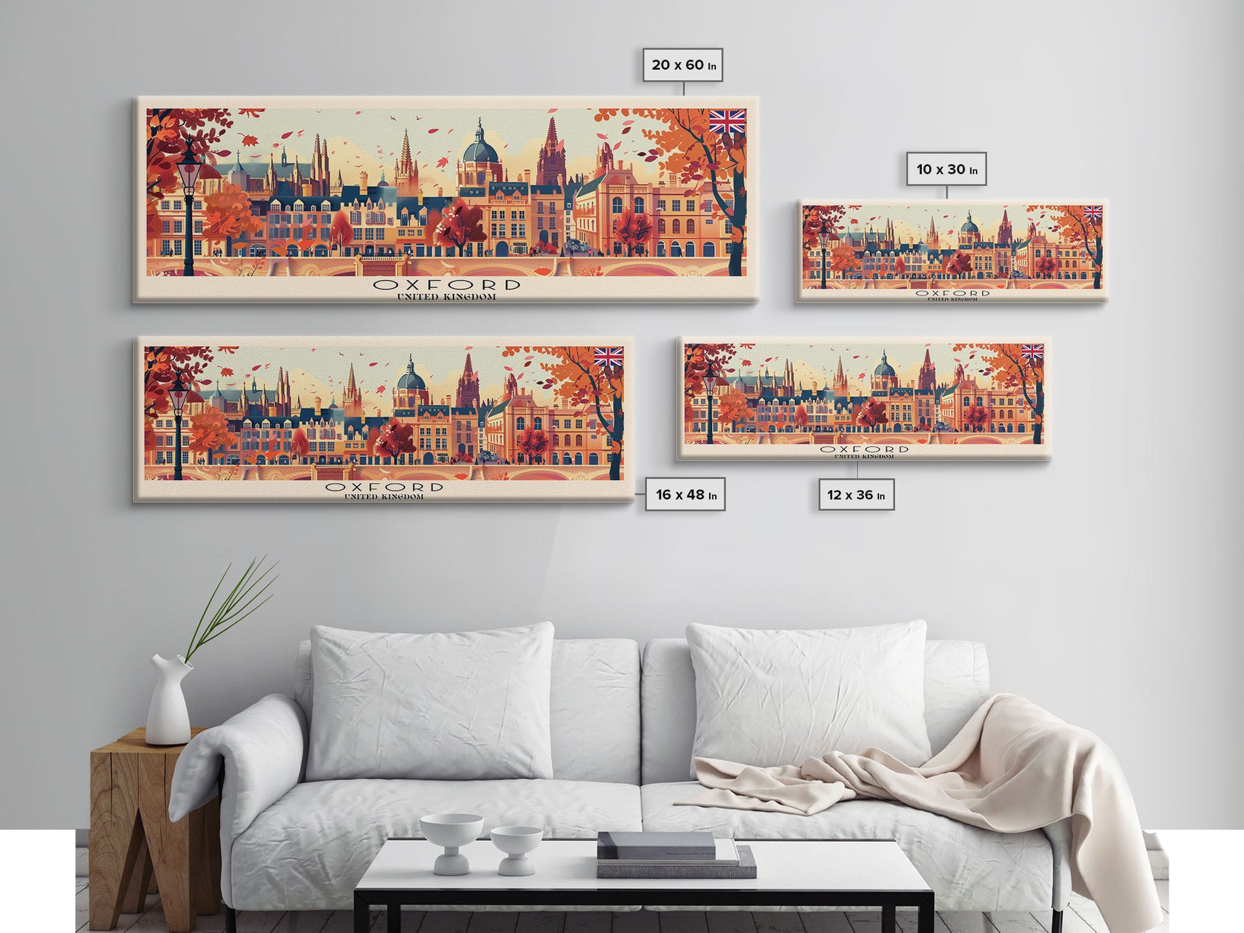Oxford United Kingdom Panoramic Travel Poster, Framed Canvas Print or Metal Wall Art, Travel Art, Home Decor, Panoramic Painting, Midcentury Art