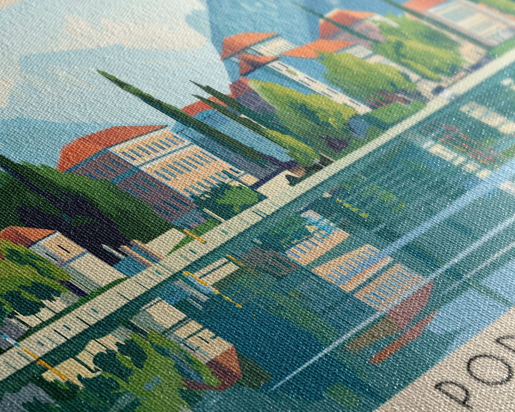 Most of our canvases are made in the USA, with the exception of canvases ordered with the light oak unstained frames, and any large canvases (24x48, 30x60, 16x48 and 20x60) ordered WITH a frame. These are temporarily made in and shipped from Europe, while we try to find a more consistent supplier in the USA.