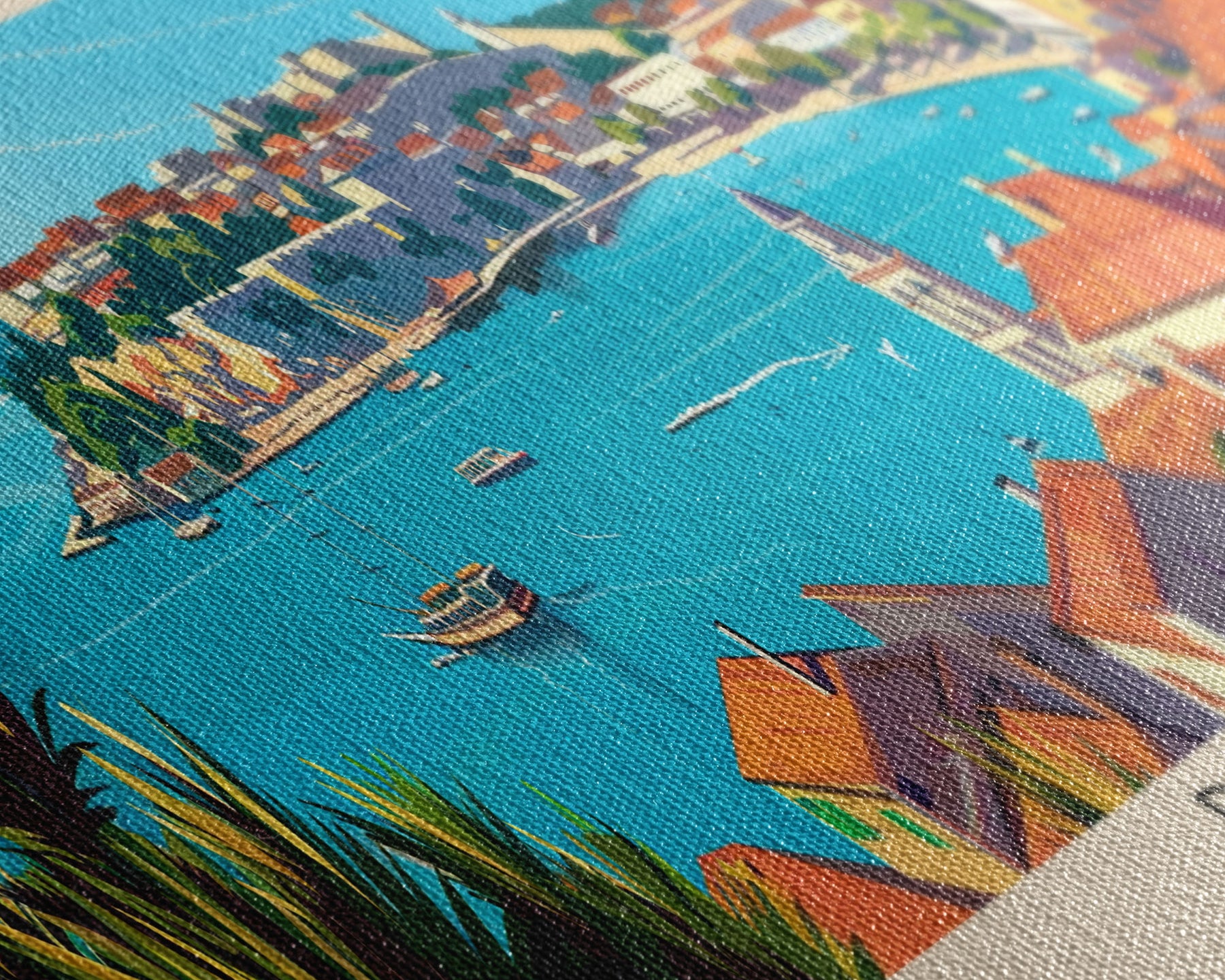Most of our canvases are made in the USA, with the exception of canvases ordered with the light oak unstained frames, and any large canvases (24x48, 30x60, 16x48 and 20x60) ordered WITH a frame. These are temporarily made in and shipped from Europe, while we try to find a more consistent supplier in the USA.