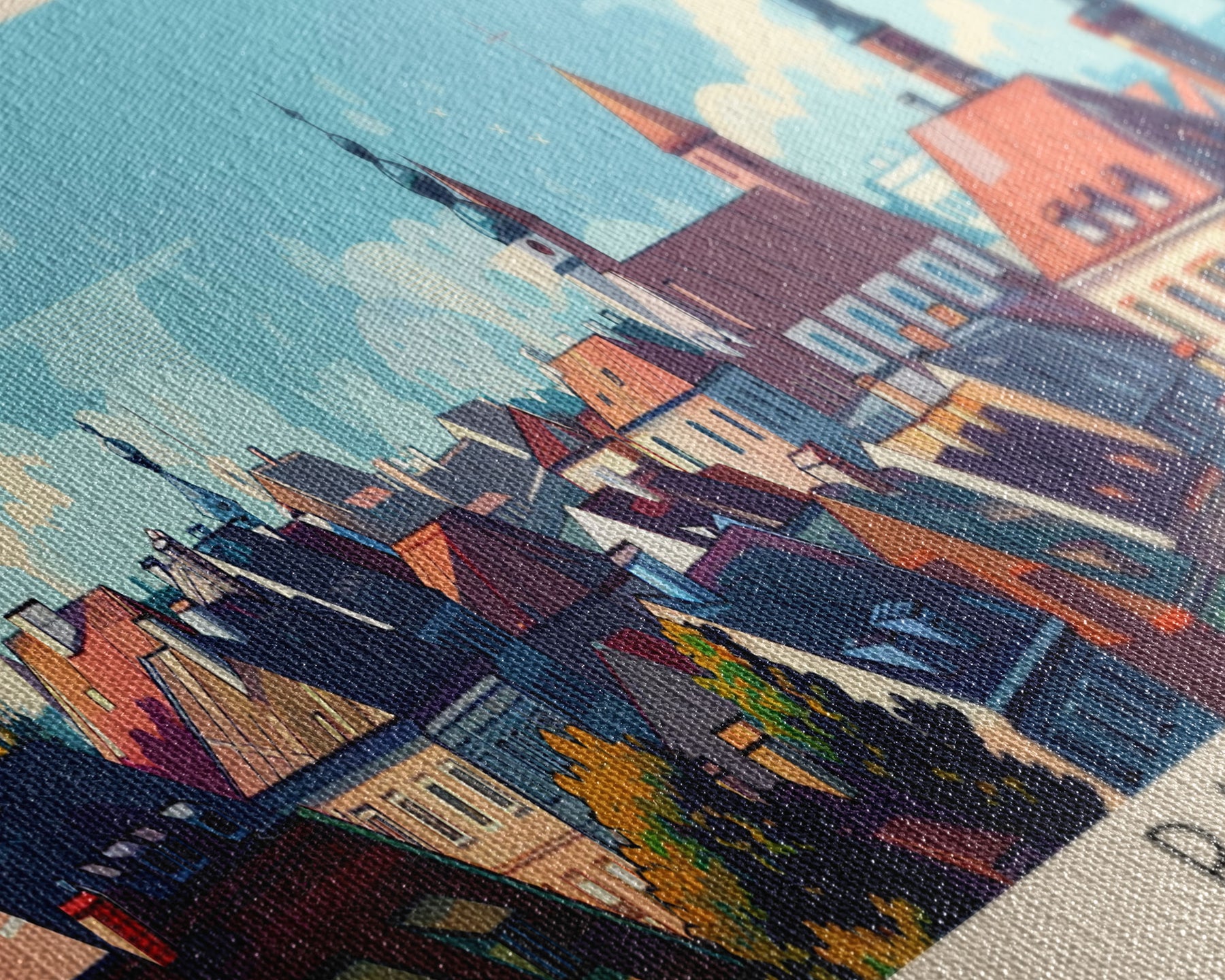 Most of our canvases are made in the USA, with the exception of canvases ordered with the light oak unstained frames, and any large canvases (24x48, 30x60, 16x48 and 20x60) ordered WITH a frame. These are temporarily made in and shipped from Europe, while we try to find a more consistent supplier in the USA.
