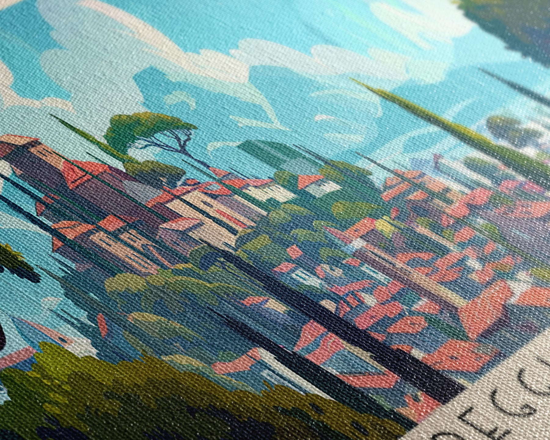 Most of our canvases are made in the USA, with the exception of canvases ordered with the light oak unstained frames, and any large canvases (24x48, 30x60, 16x48 and 20x60) ordered WITH a frame. These are temporarily made in and shipped from Europe, while we try to find a more consistent supplier in the USA.