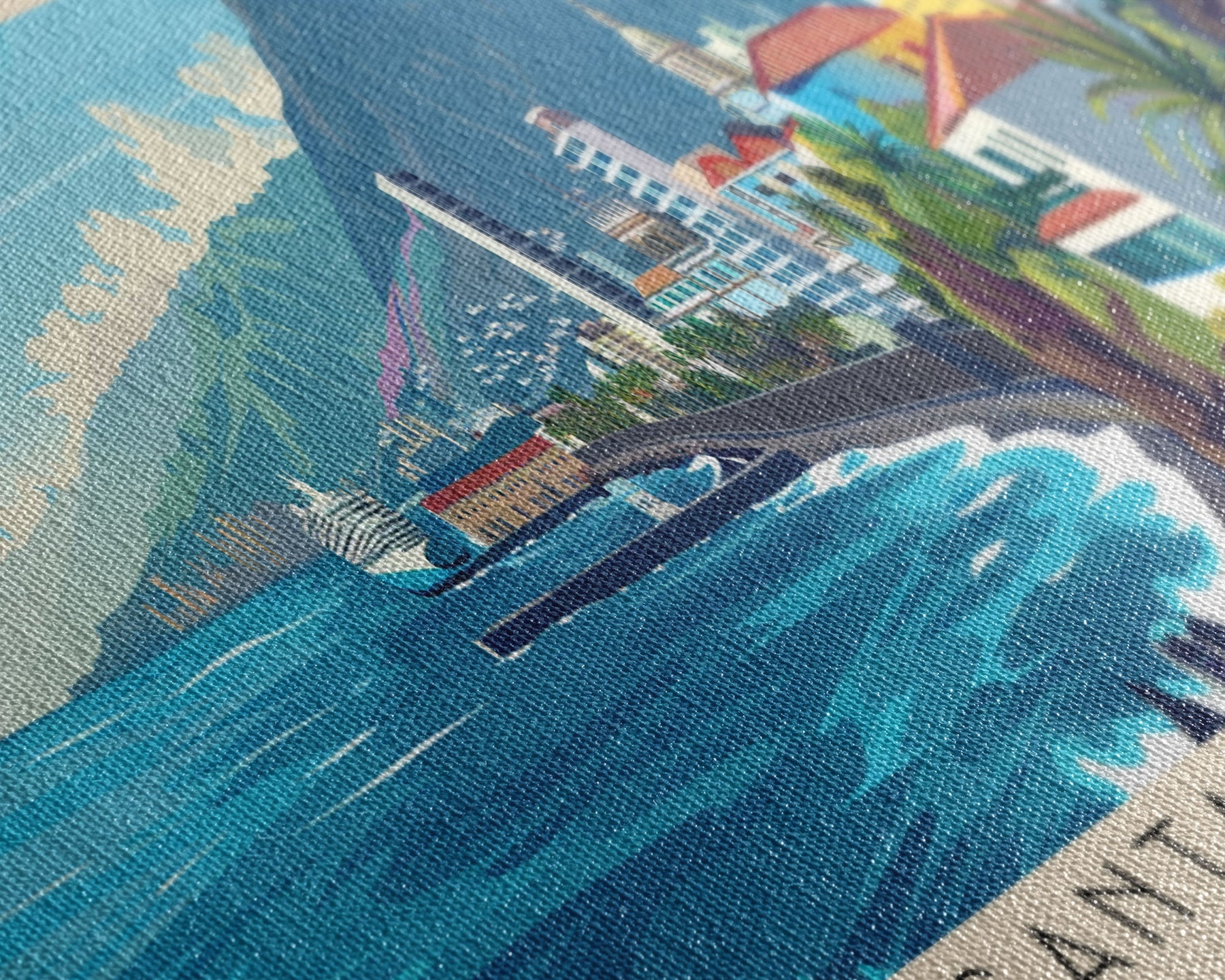 Most of our canvases are made in the USA, with the exception of canvases ordered with the light oak unstained frames, and any large canvases (24x48, 30x60, 16x48 and 20x60) ordered WITH a frame. These are temporarily made in and shipped from Europe, while we try to find a more consistent supplier in the USA.