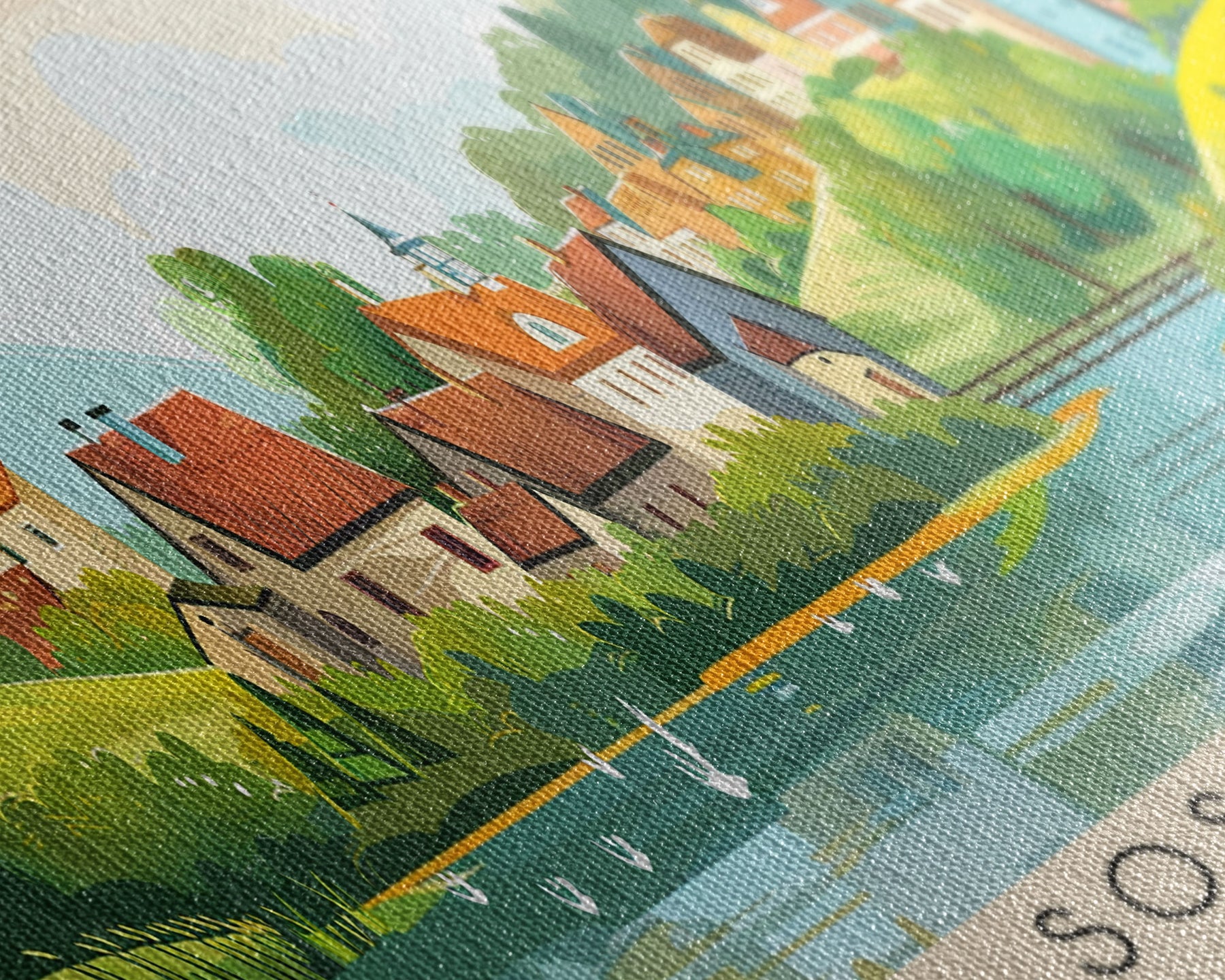 Most of our canvases are made in the USA, with the exception of canvases ordered with the light oak unstained frames, and any large canvases (24x48, 30x60, 16x48 and 20x60) ordered WITH a frame. These are temporarily made in and shipped from Europe, while we try to find a more consistent supplier in the USA.