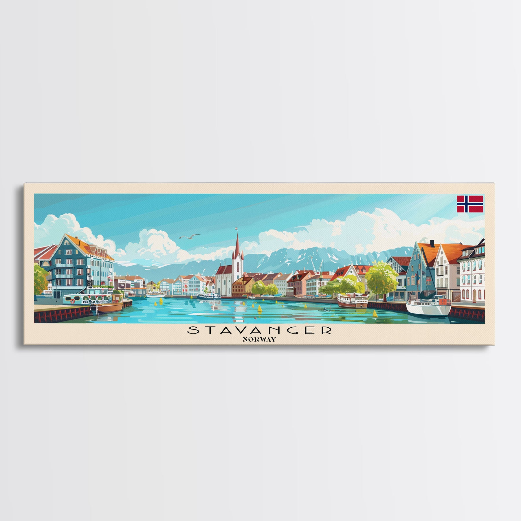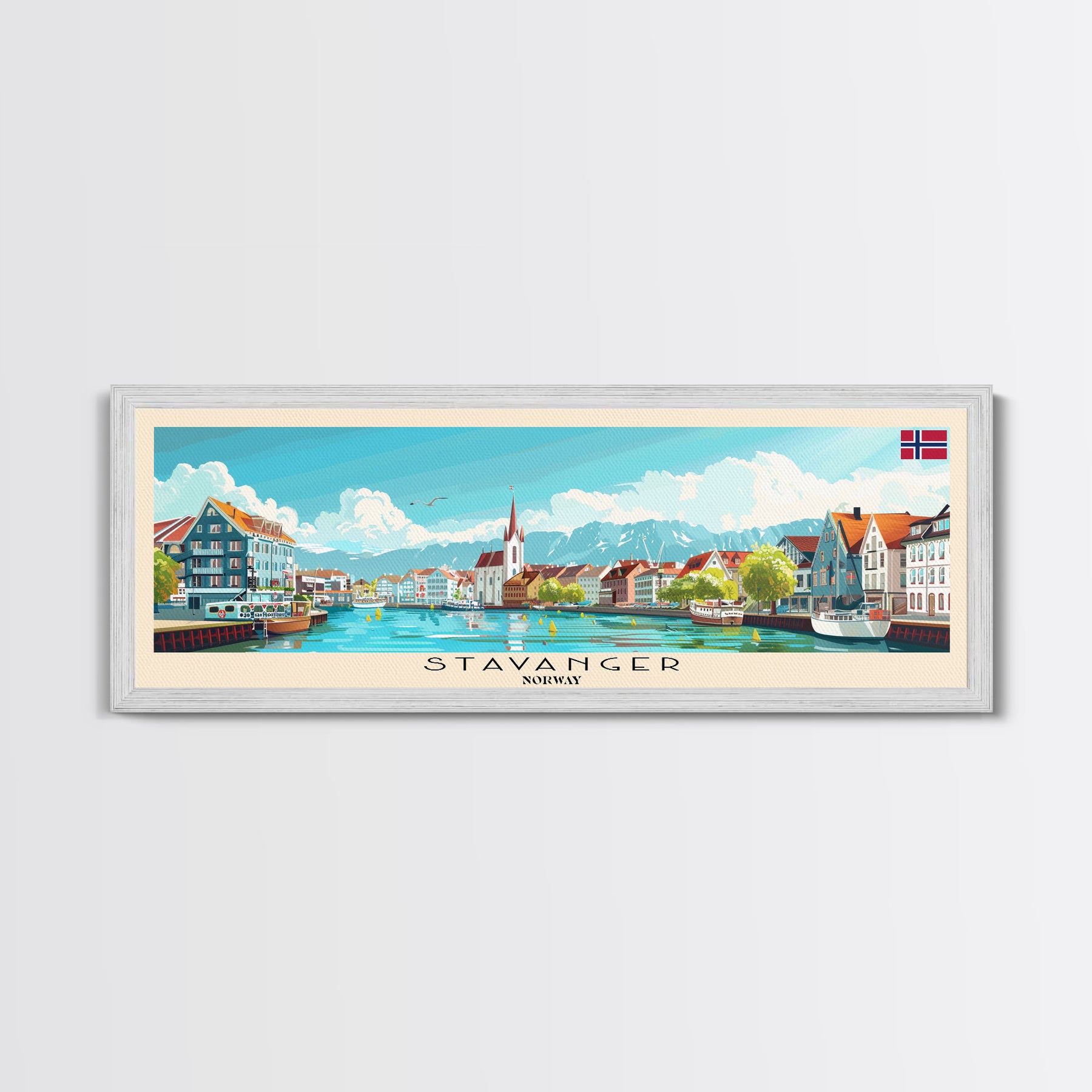 Stavanger Norway Travel Art, City Art, Framed Canvas Print or Metal Wall Art, Europe Travel Poster, Panoramic Wall Art, Extra Wide Wall Art