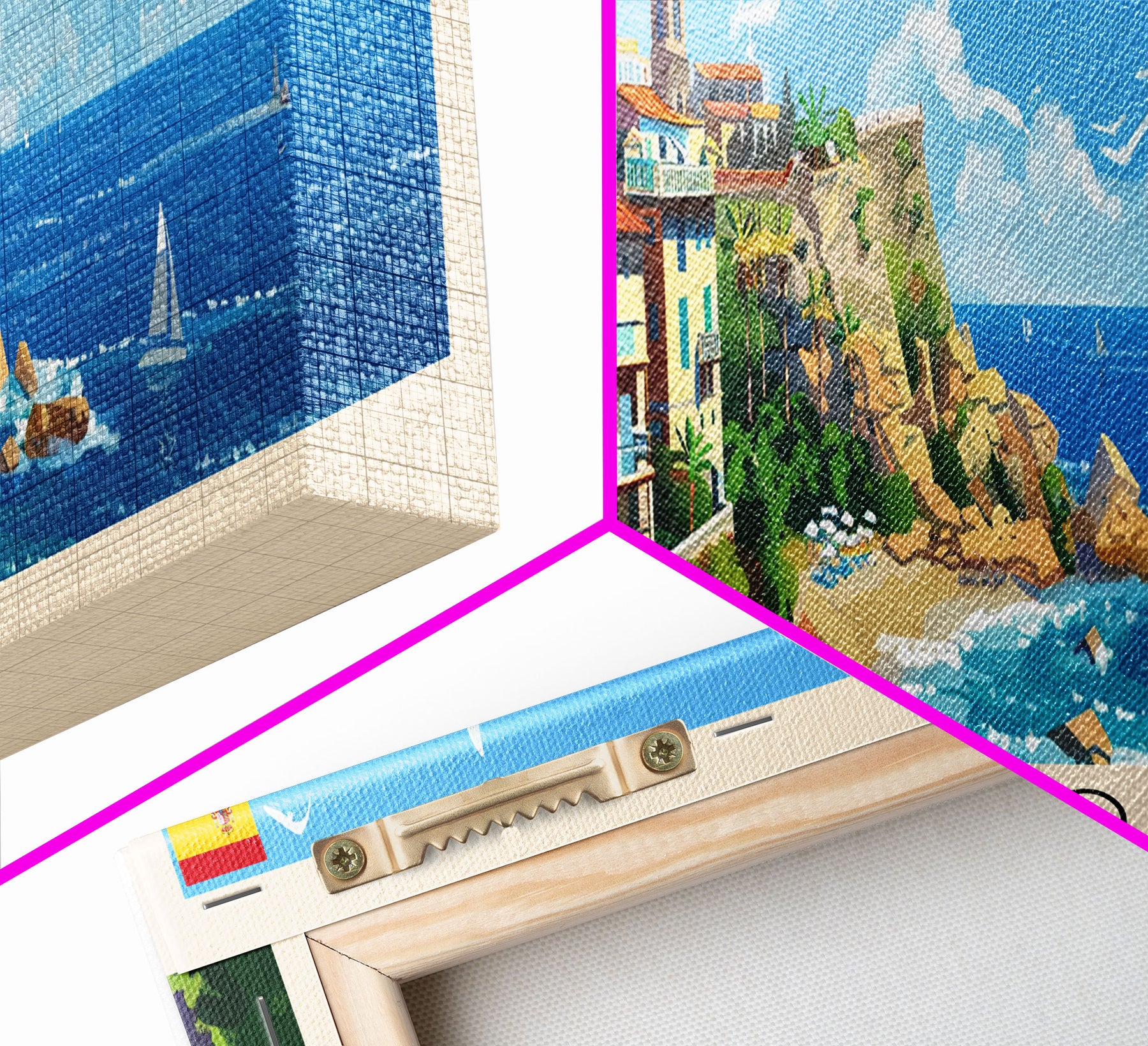 Most of our canvases are made in the USA, with the exception of canvases ordered with the light oak unstained frames, and any large canvases (24x48, 30x60, 16x48 and 20x60) ordered WITH a frame. These are temporarily made in and shipped from Europe, while we try to find a more consistent supplier in the USA.