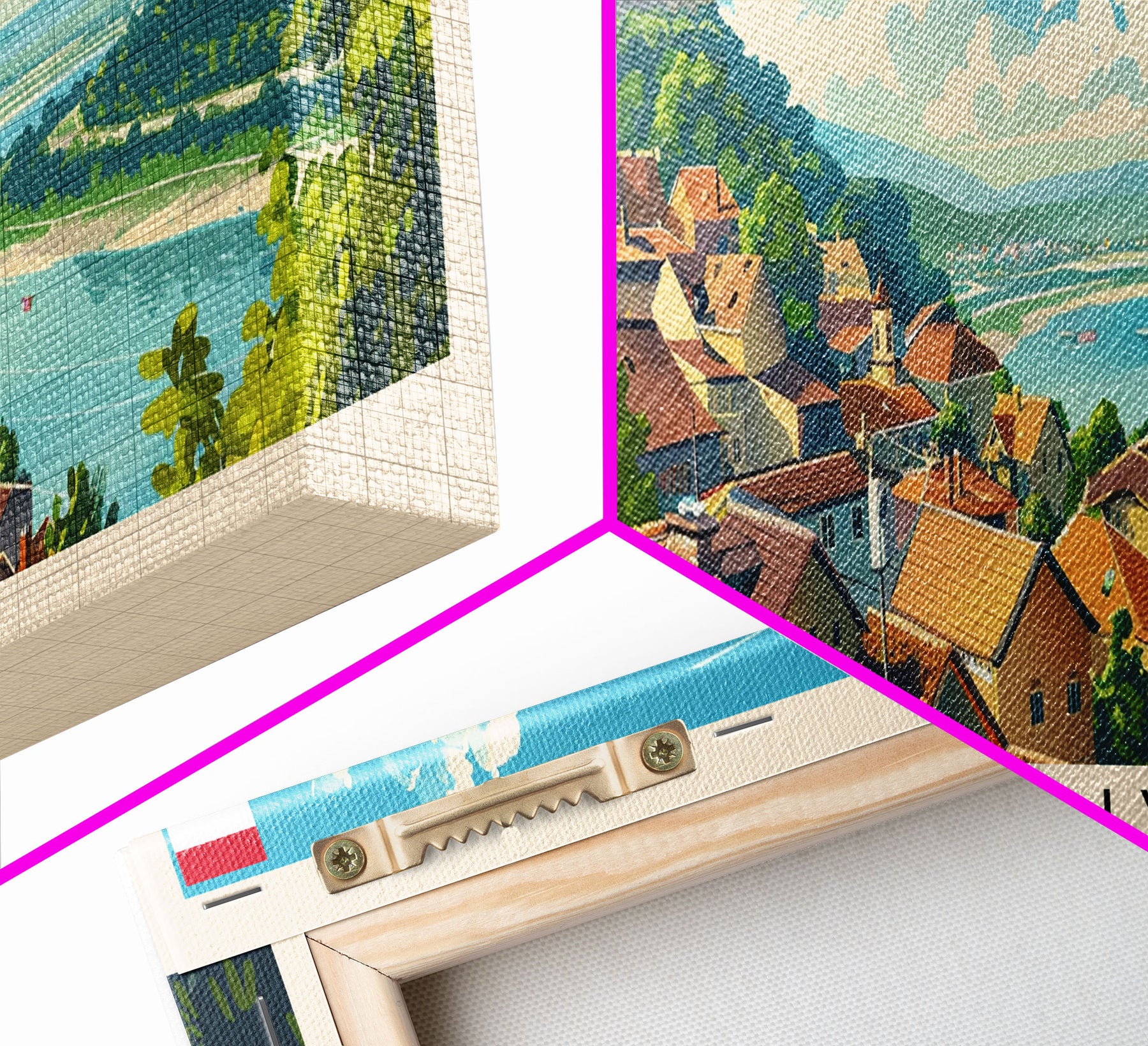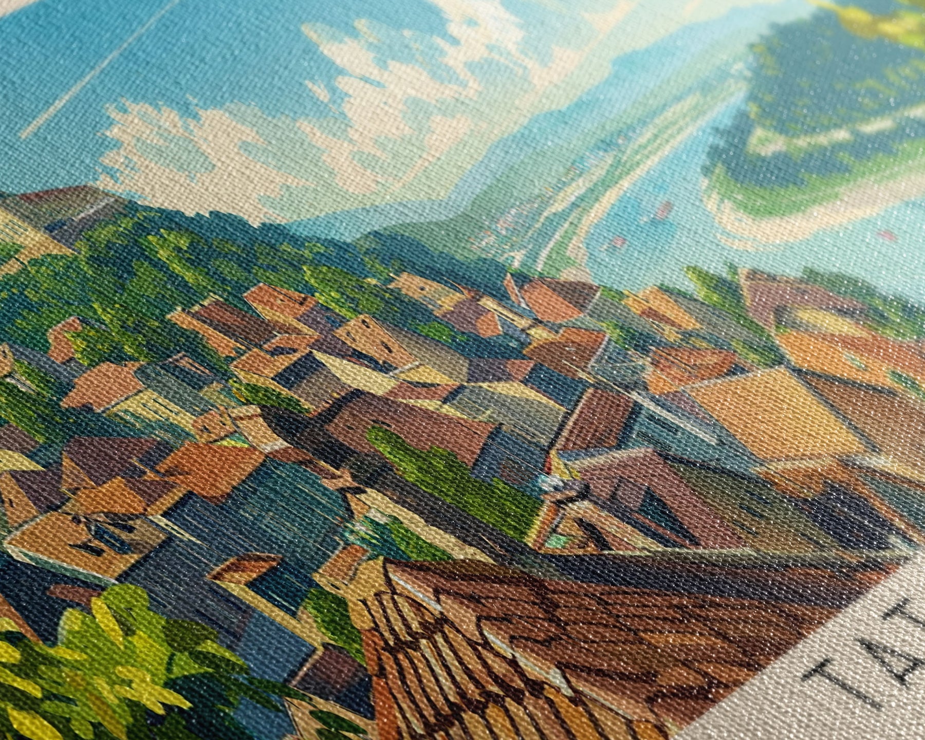 Most of our canvases are made in the USA, with the exception of canvases ordered with the light oak unstained frames, and any large canvases (24x48, 30x60, 16x48 and 20x60) ordered WITH a frame. These are temporarily made in and shipped from Europe, while we try to find a more consistent supplier in the USA.