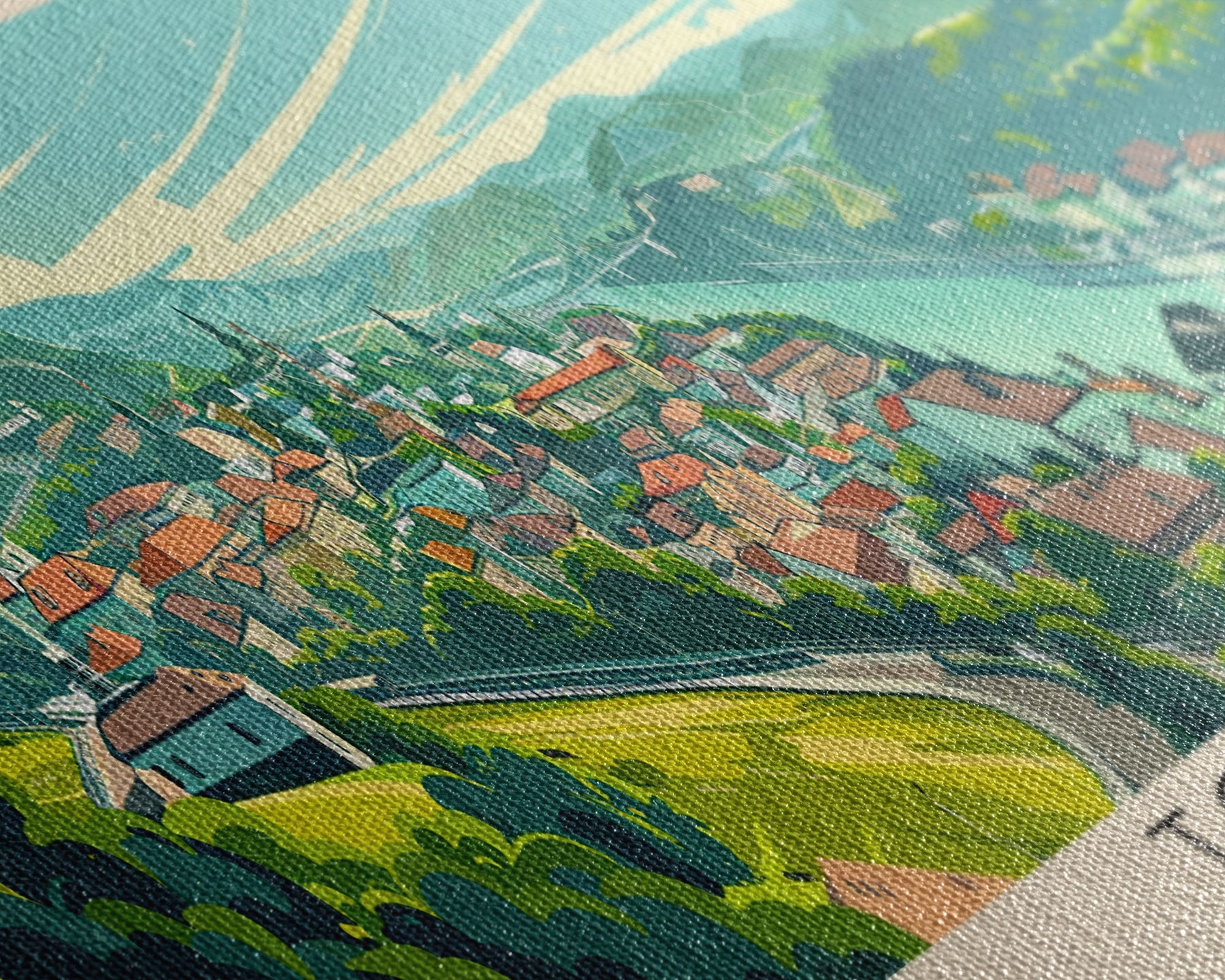Most of our canvases are made in the USA, with the exception of canvases ordered with the light oak unstained frames, and any large canvases (24x48, 30x60, 16x48 and 20x60) ordered WITH a frame. These are temporarily made in and shipped from Europe, while we try to find a more consistent supplier in the USA.