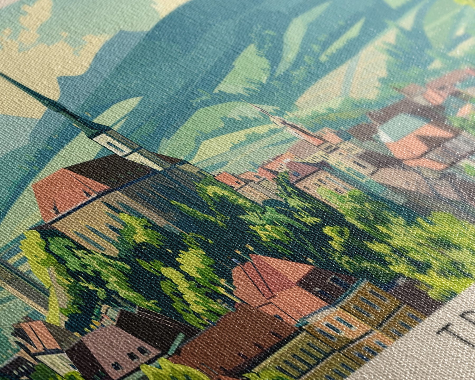 Most of our canvases are made in the USA, with the exception of canvases ordered with the light oak unstained frames, and any large canvases (24x48, 30x60, 16x48 and 20x60) ordered WITH a frame. These are temporarily made in and shipped from Europe, while we try to find a more consistent supplier in the USA.